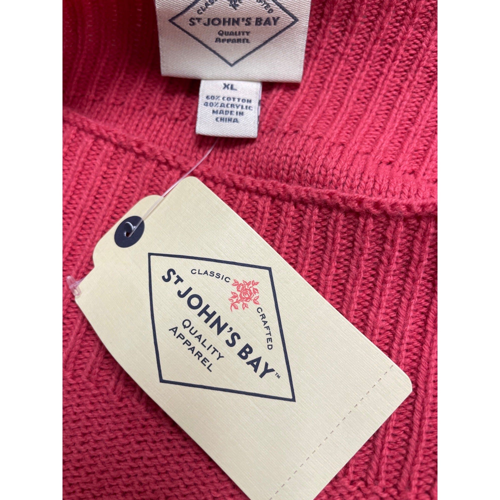St Johns Bay Women's Pink Knit Open Neck Pullover Sweater Size XL - New