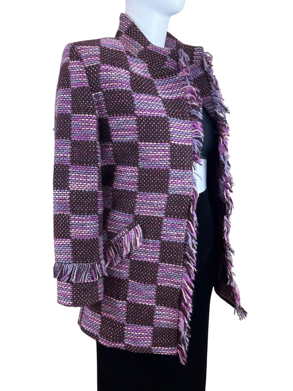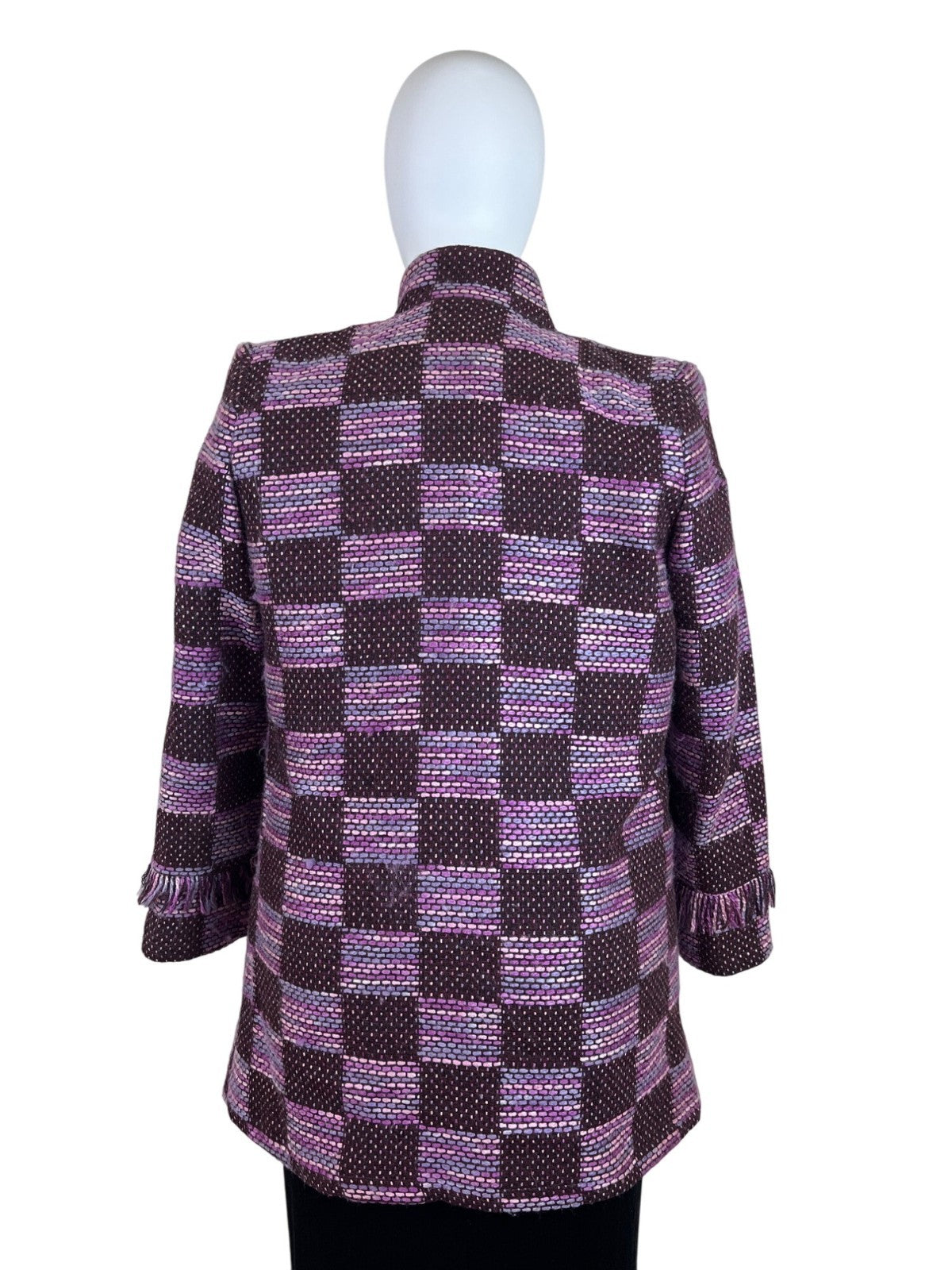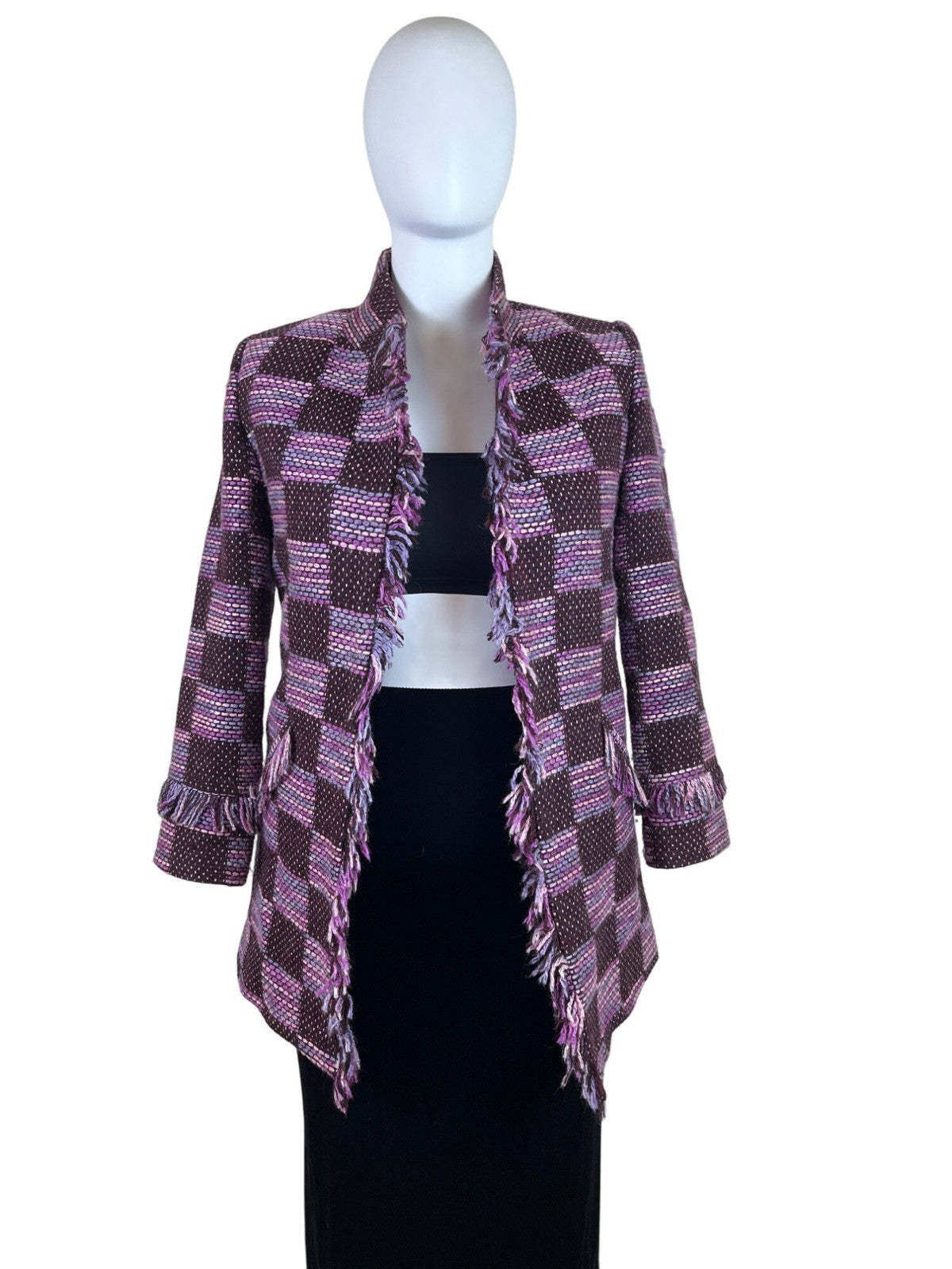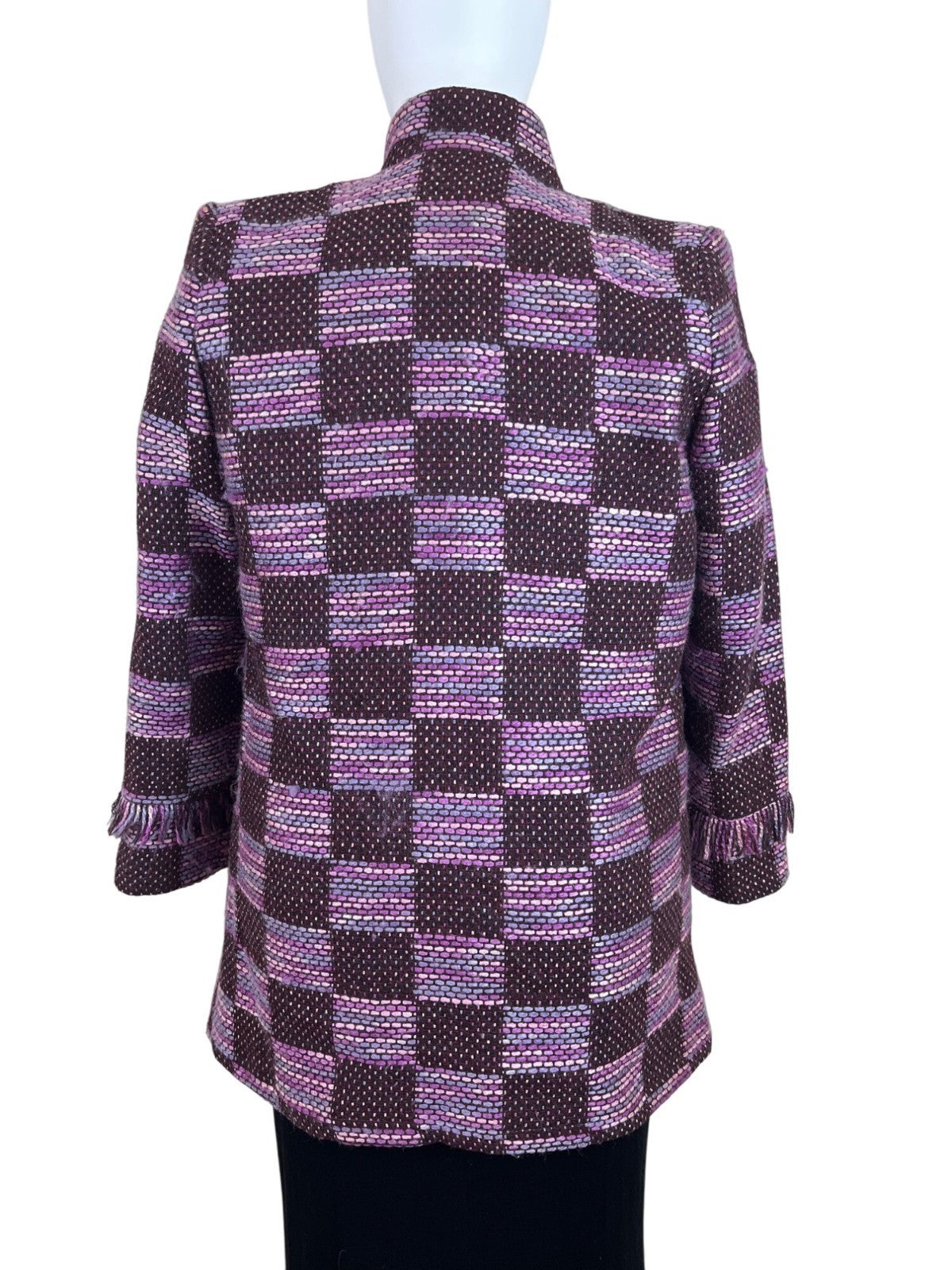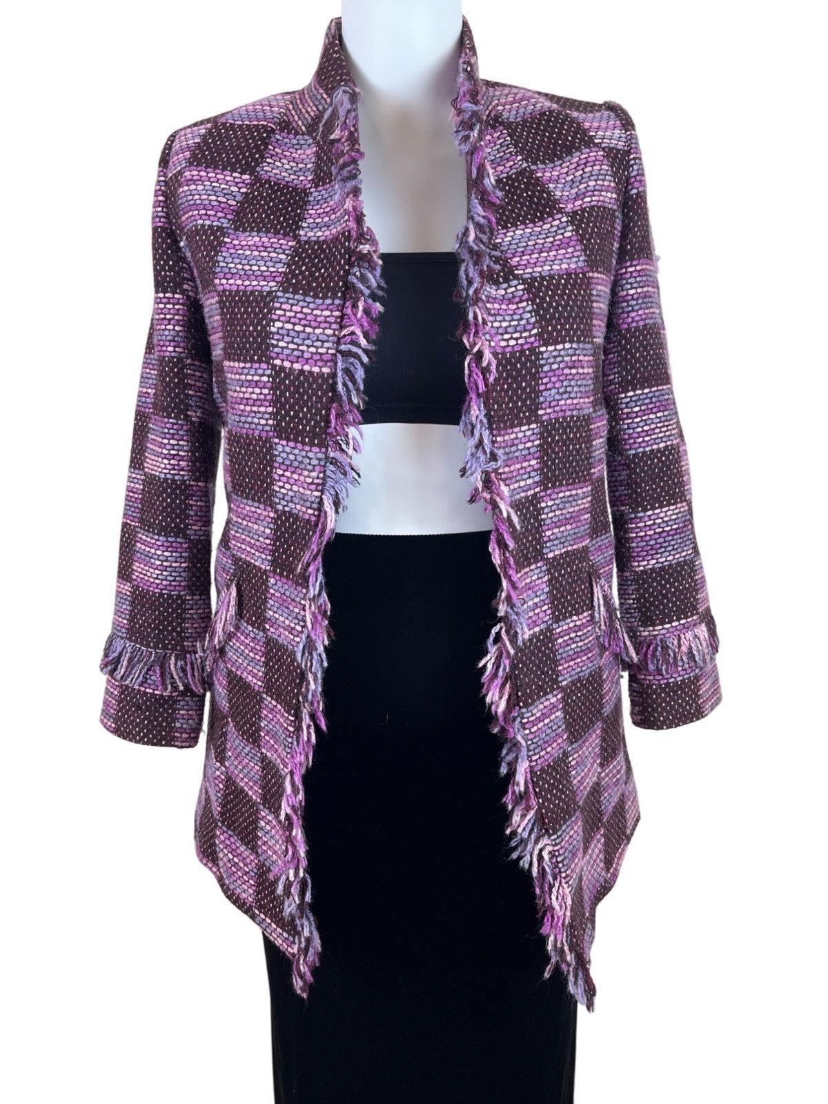 Starlite Womens Brown & Pink Woven Fringe Open Front Blazer Jacket Sz 12