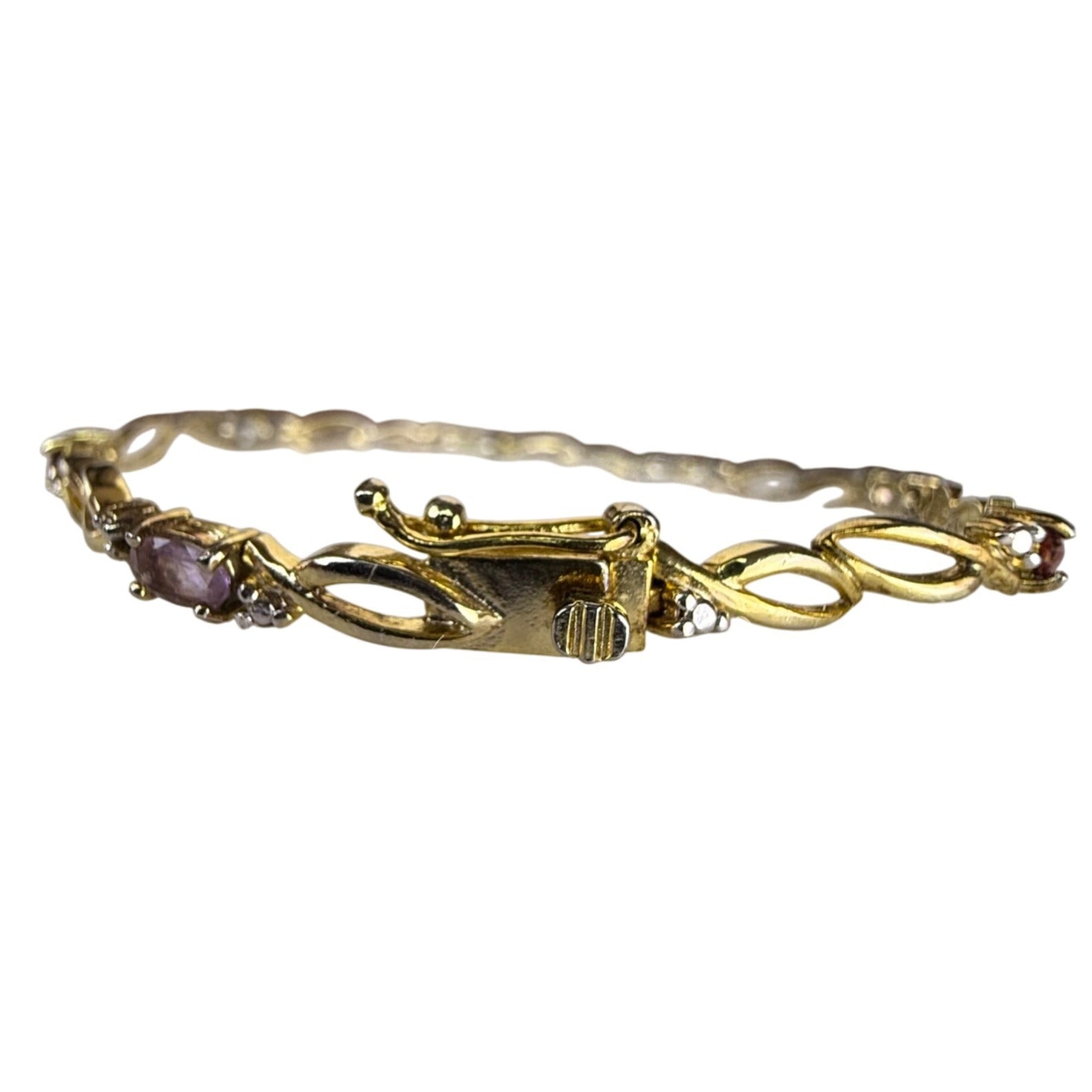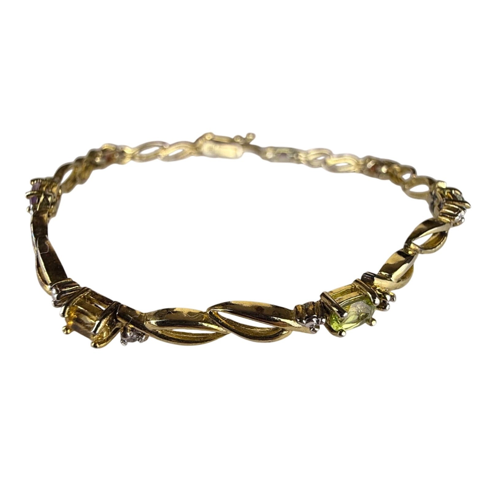 Sterling Silver 925 FAS Multi Stone Gold Accent Bracelet Vintage Elegant Jewelry