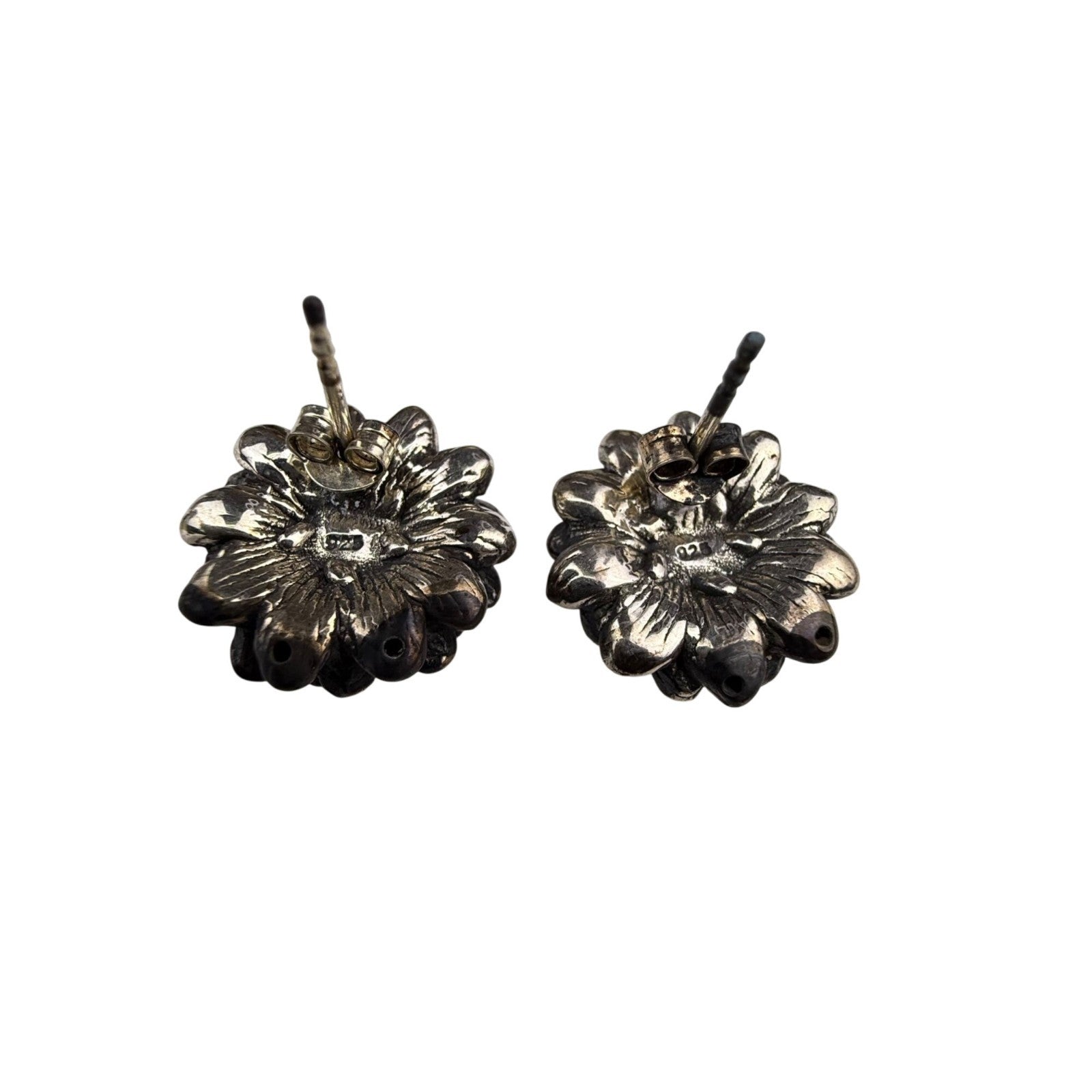 Sterling Silver Floral Design Beaded Stud Earrings 925 Handcrafted Unique Women’
