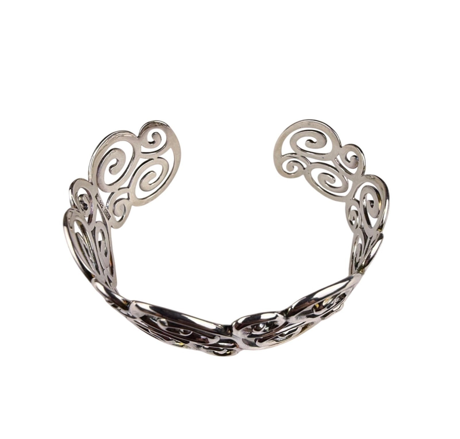 Sterling Silver Womens Cuff Bracelet Swirl Openwork Design China 925 Mark
