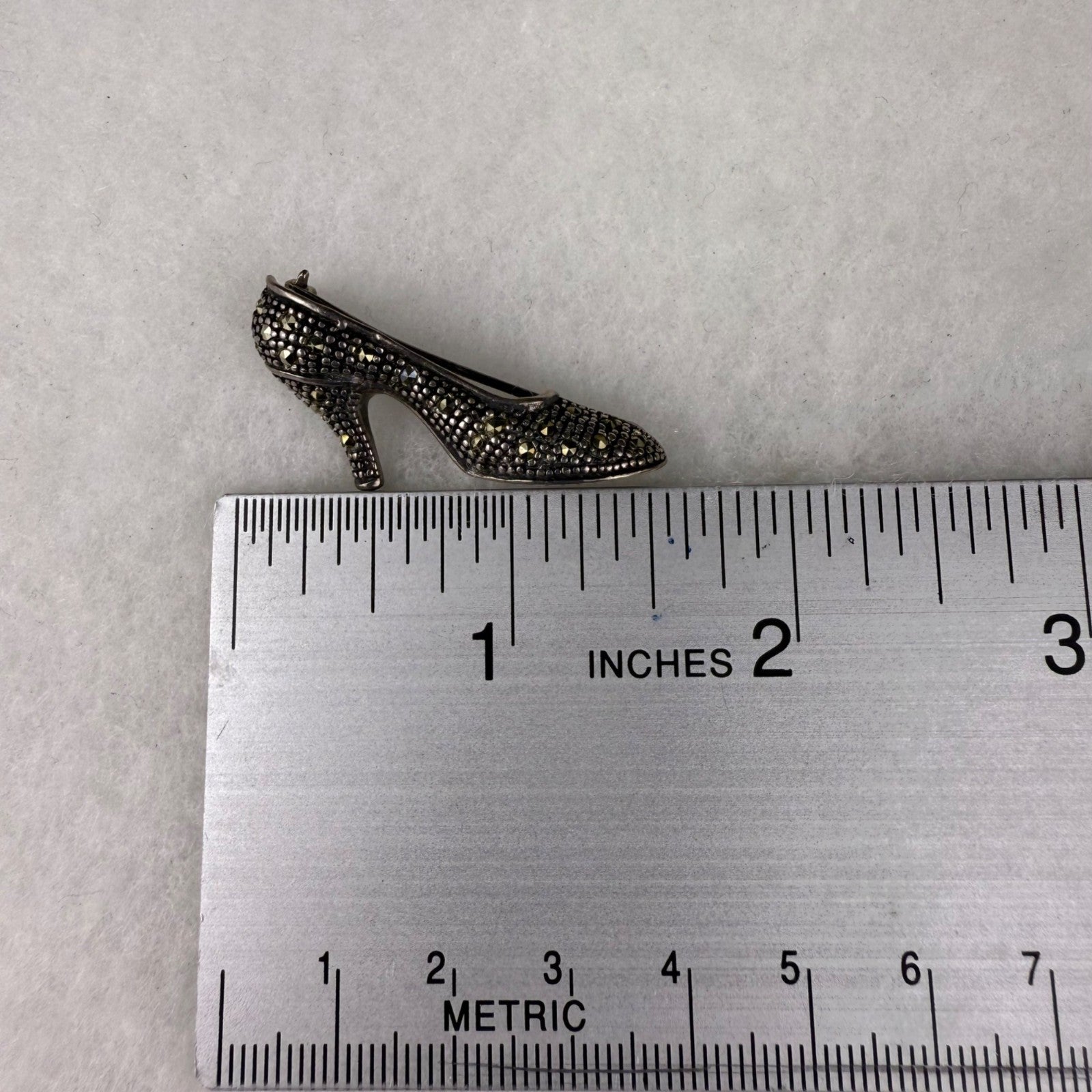 Sterling Silver Womens High Heel Shoe Brooch With Marcasite Stones Elegant