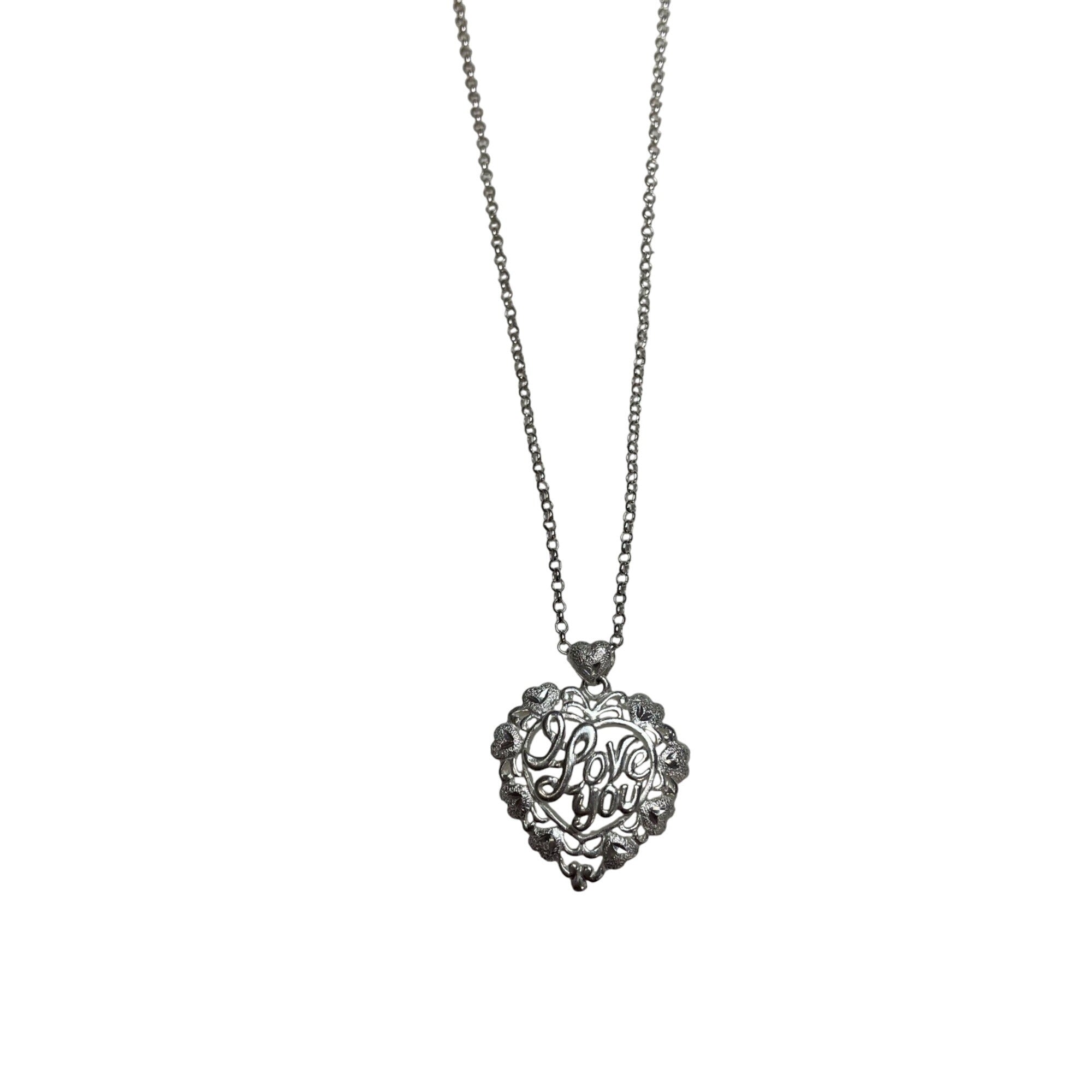 Sterling Silver Womens Silver Heart Pendant Necklace "Love You" Design Delicate Style