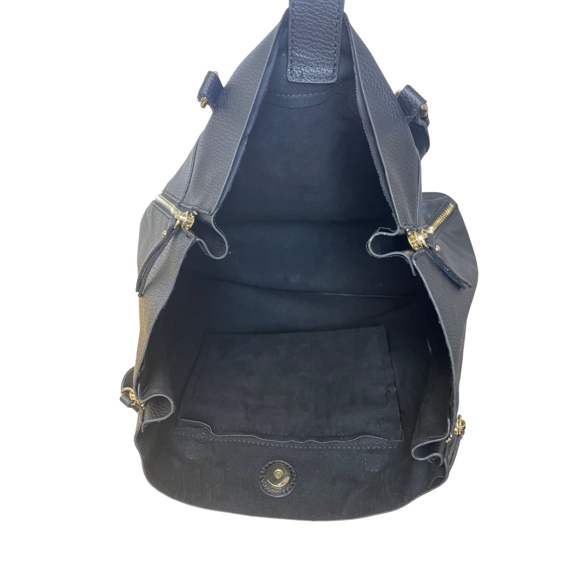 Steve Madden Women’s Black Pebbled Faux Leather Shoulder Bag With Gold Hardware Spacious Tote