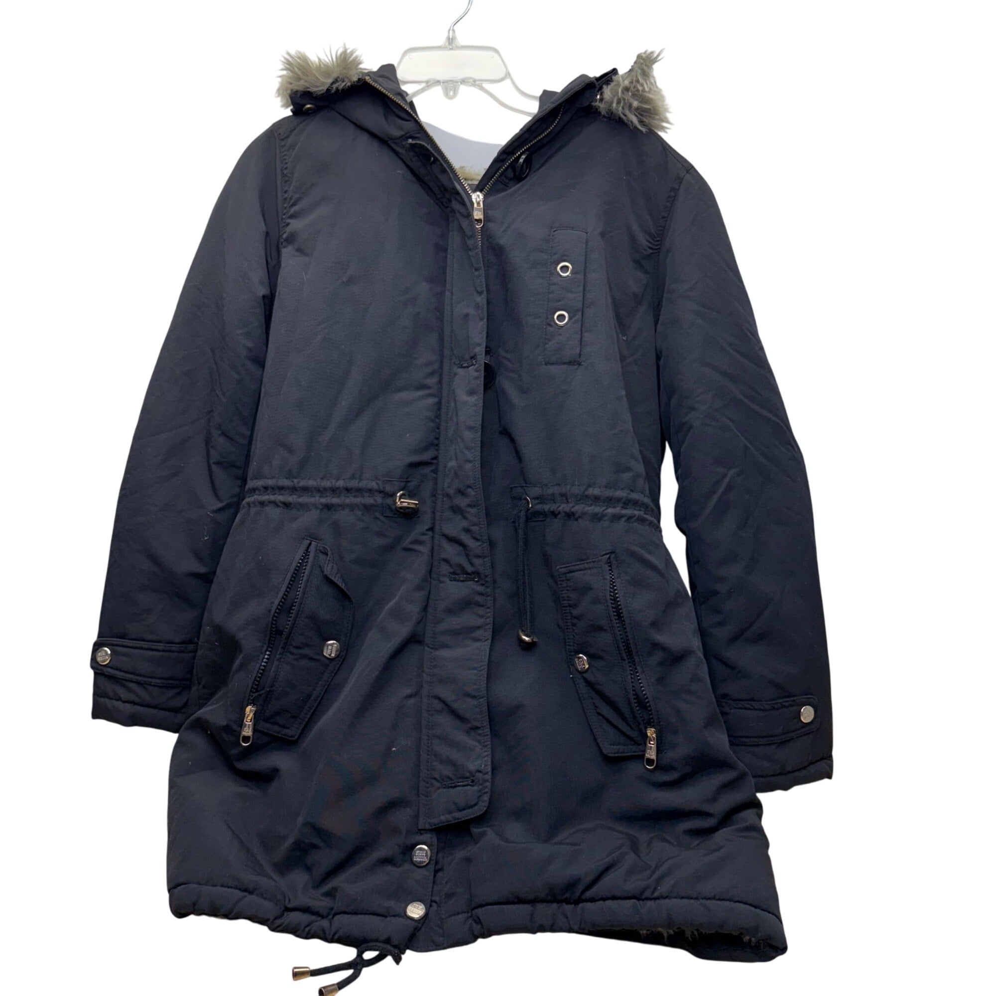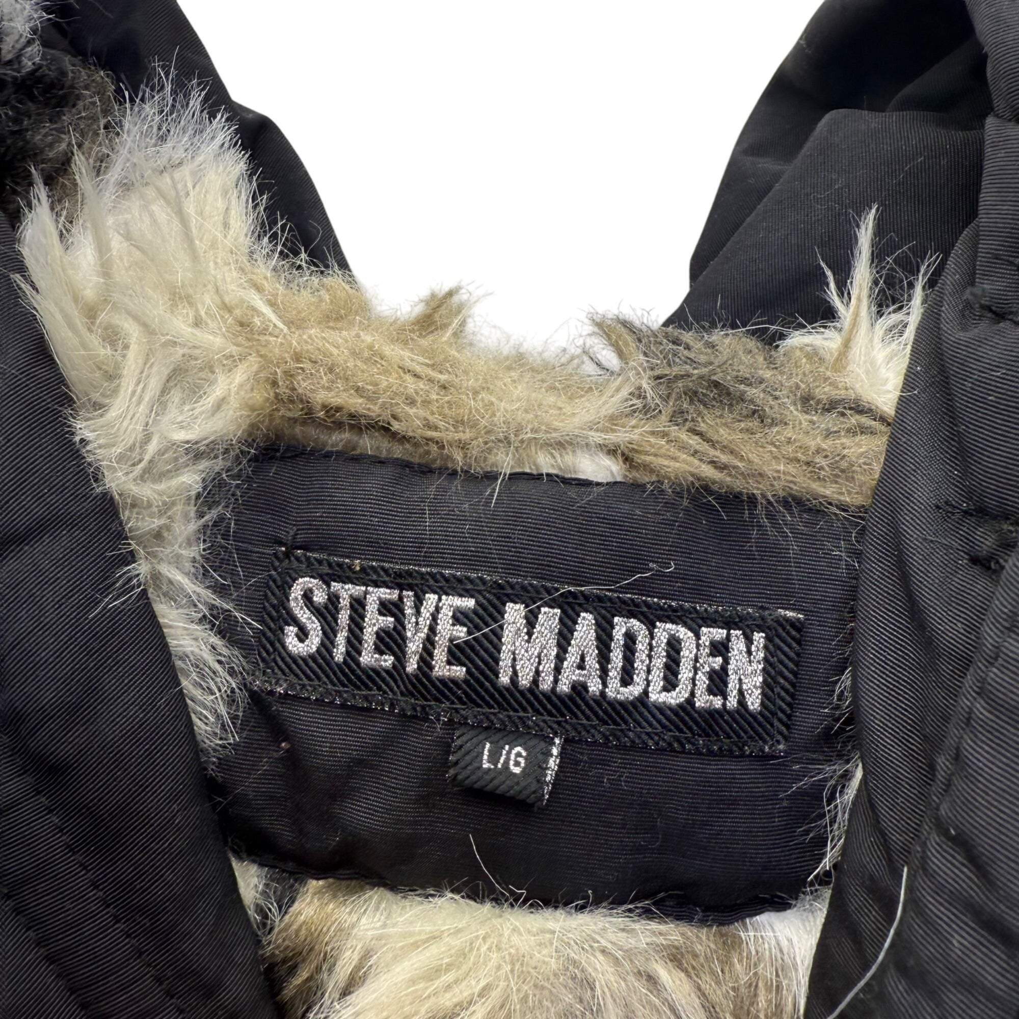 Steve Madden Womens Black Faux Fur Lined Hooded Parka Jacket Size Large Warm & Stylish