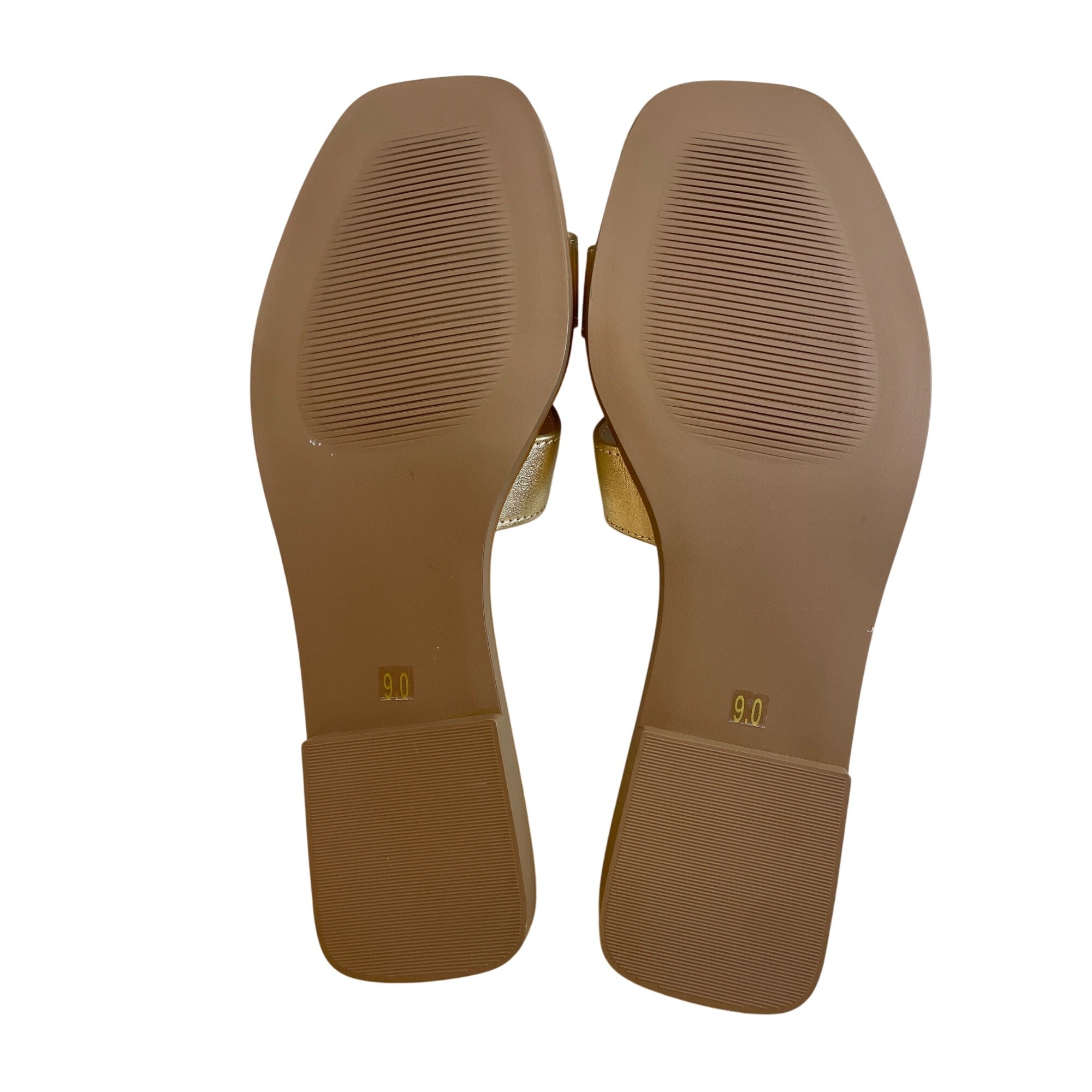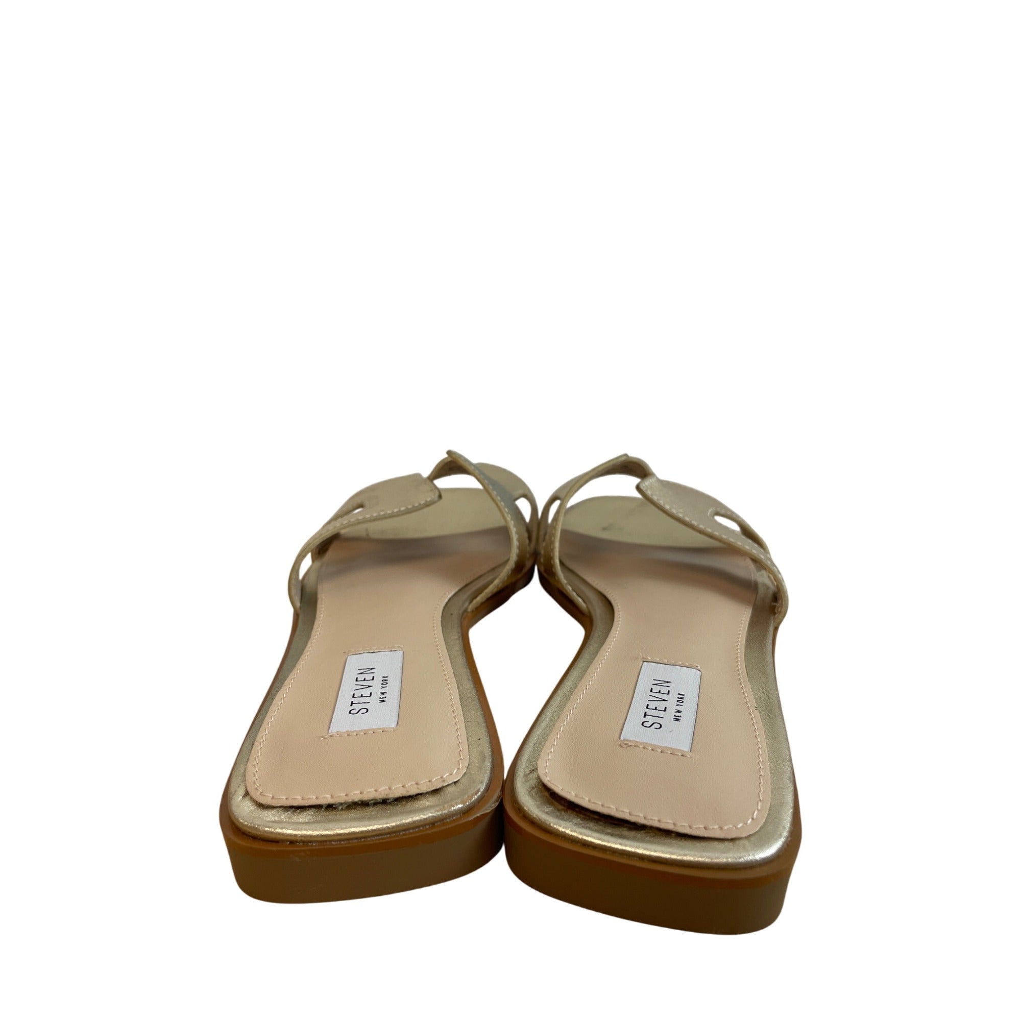 Steven New York Womens Gold Leather Open-Toe Slide Sandals Size 9