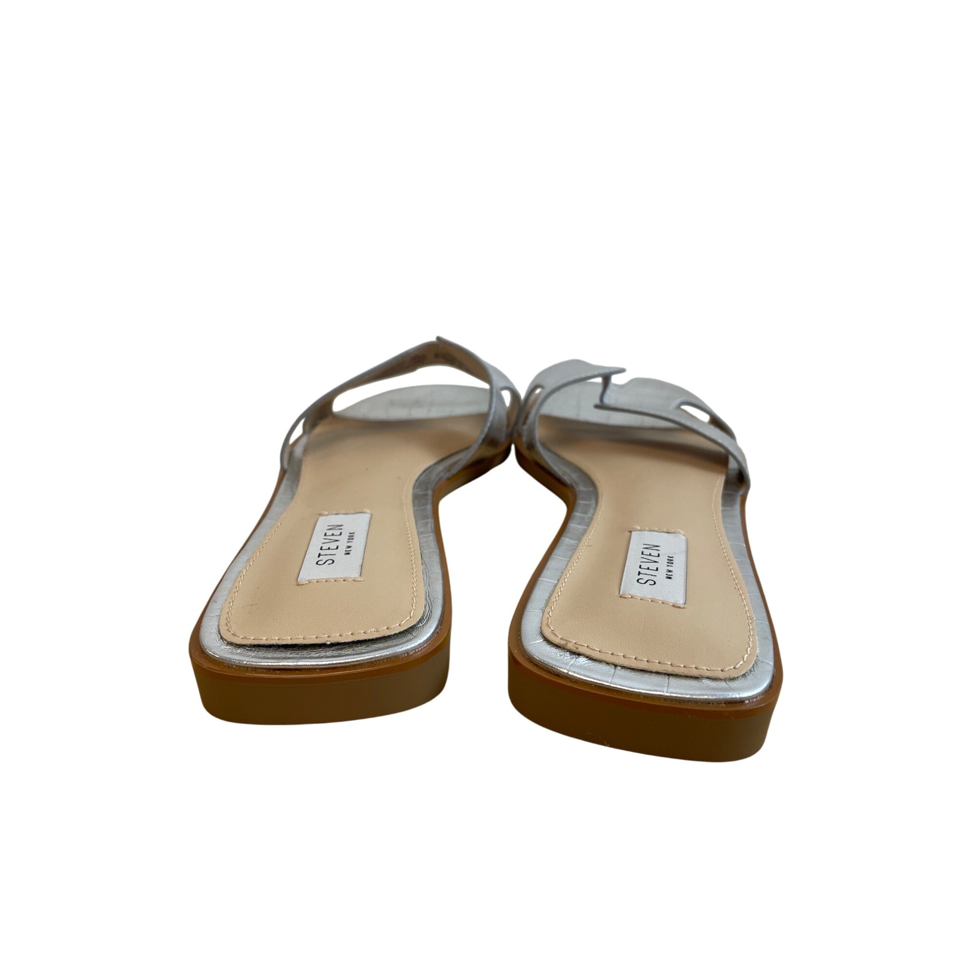 Steven Women’s Silver Faux Leather Croc Slide Sandals Size 9 Square Toe Casual Shoes