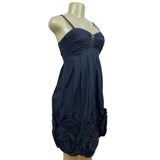Strapless Black Party Dress With Ruched Bodice & Beaded Appliqué Skirt New