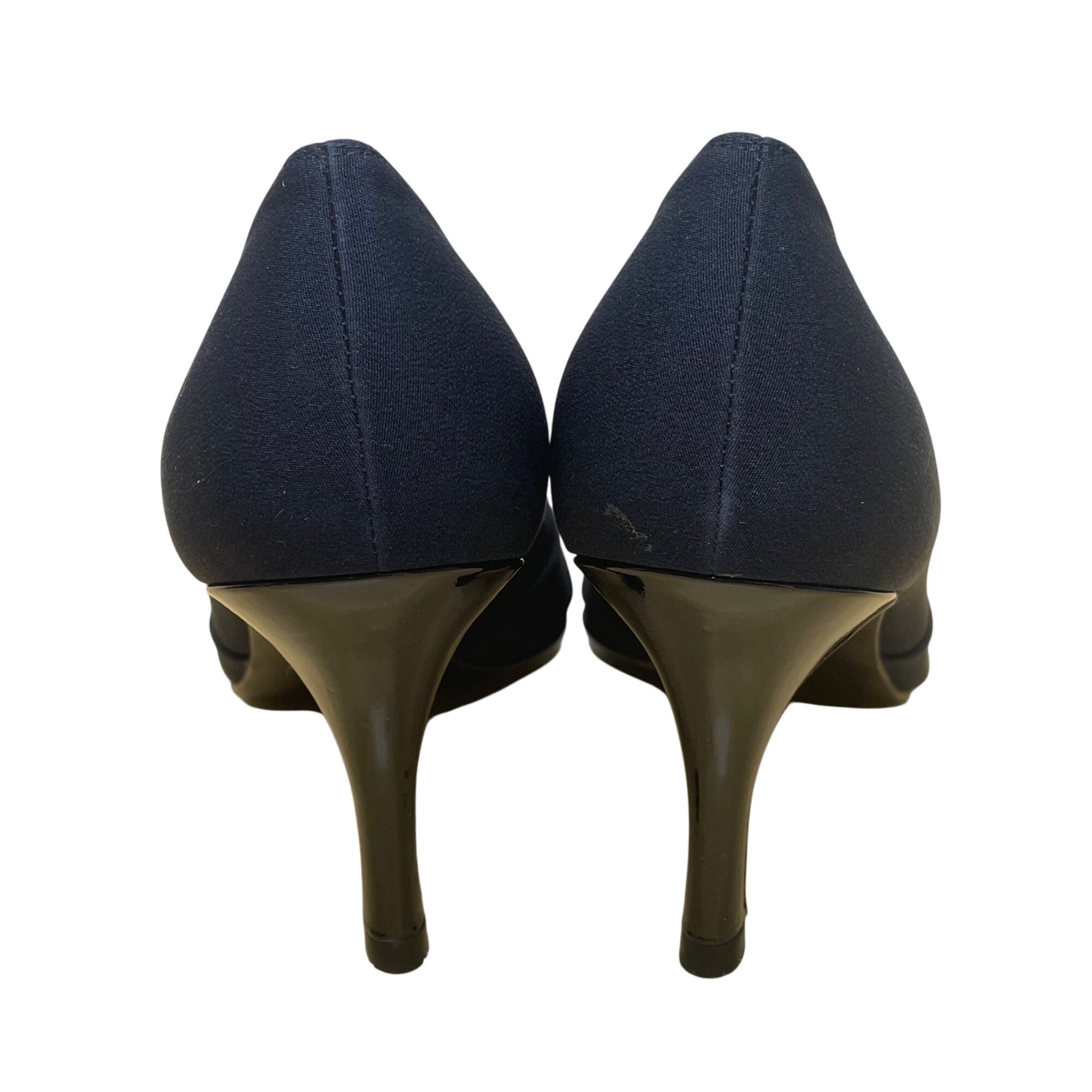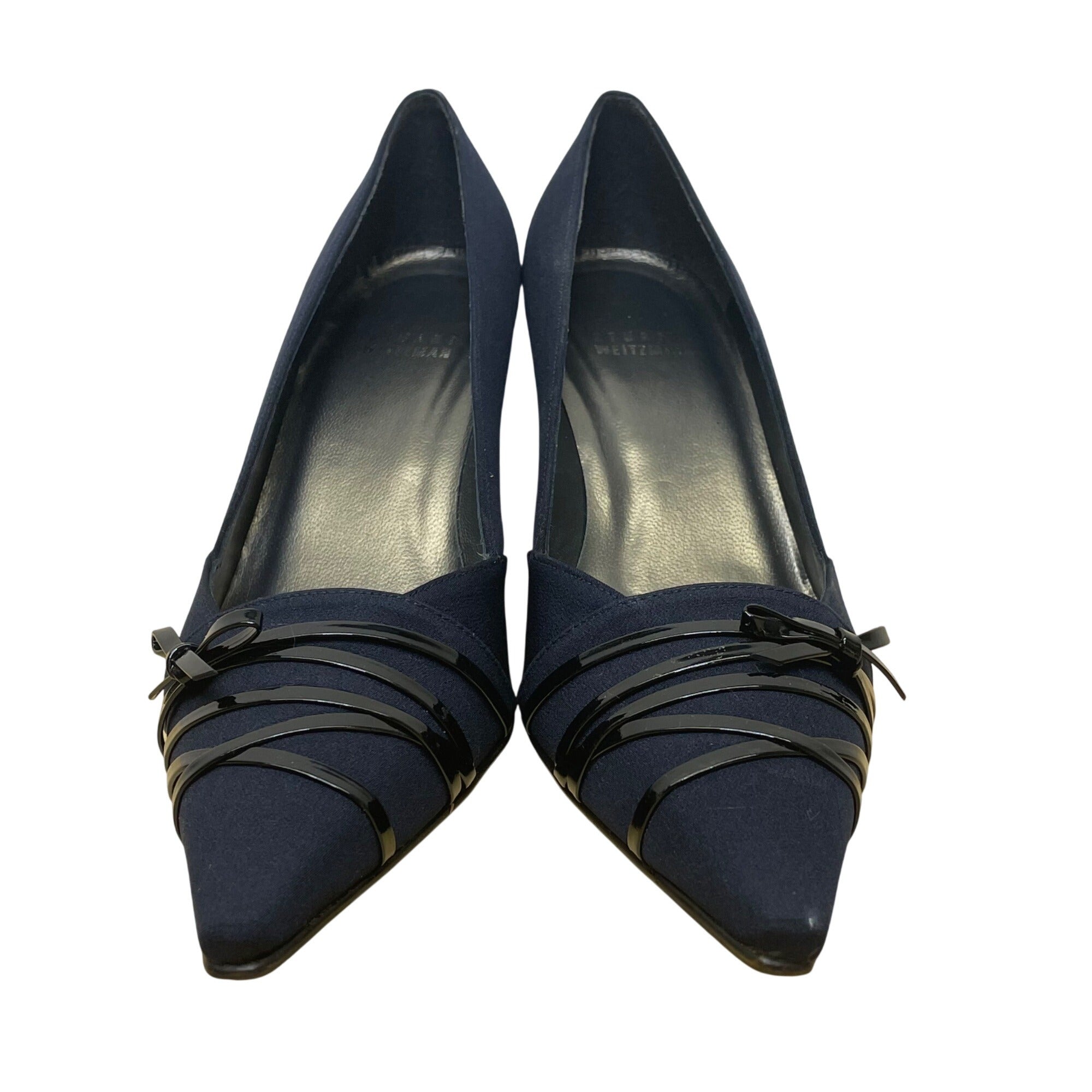 Stuart Weitzman Women’s Navy Crepe Lois Pointed Toe Heels With Bow Accent Sz 8M