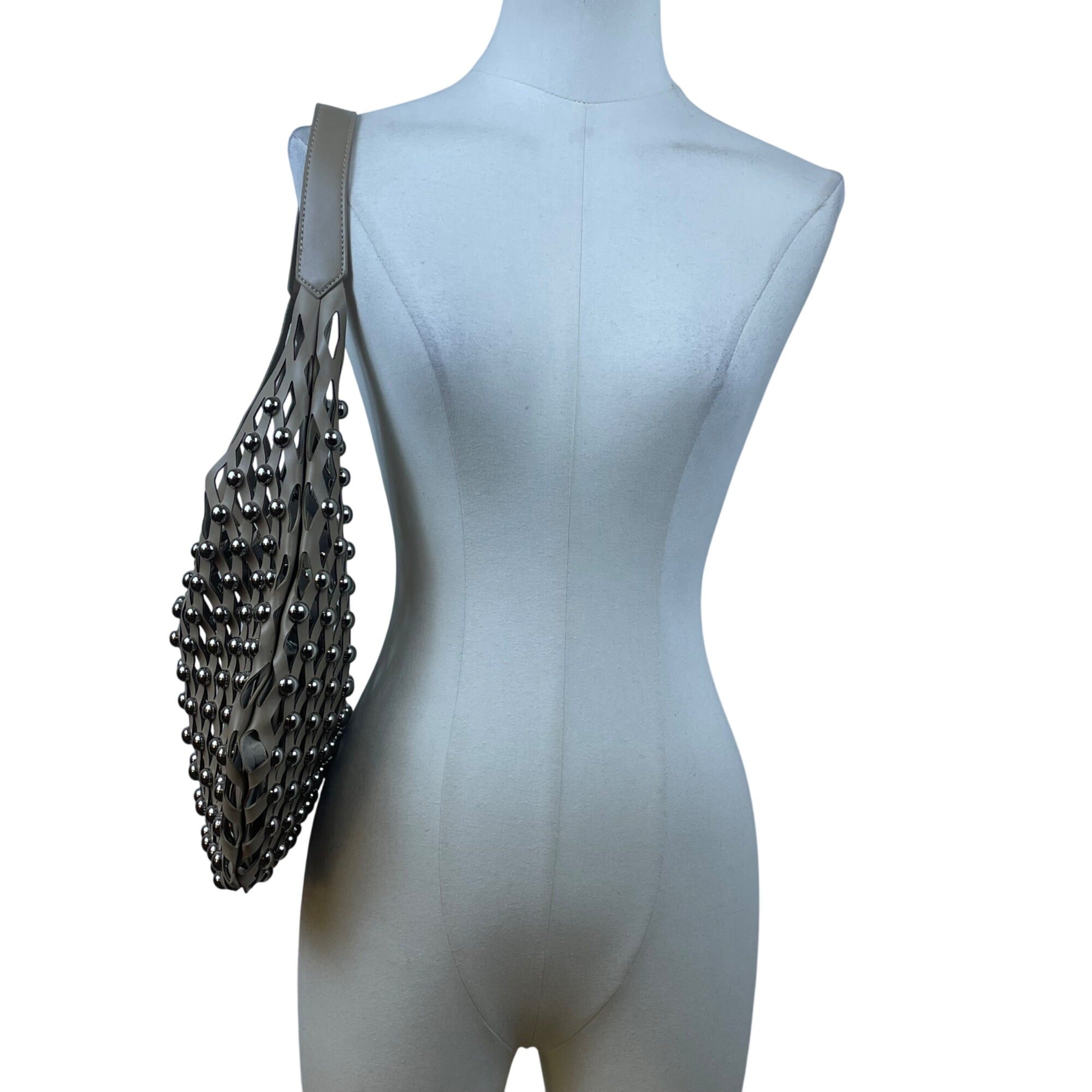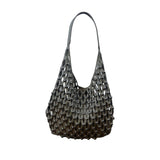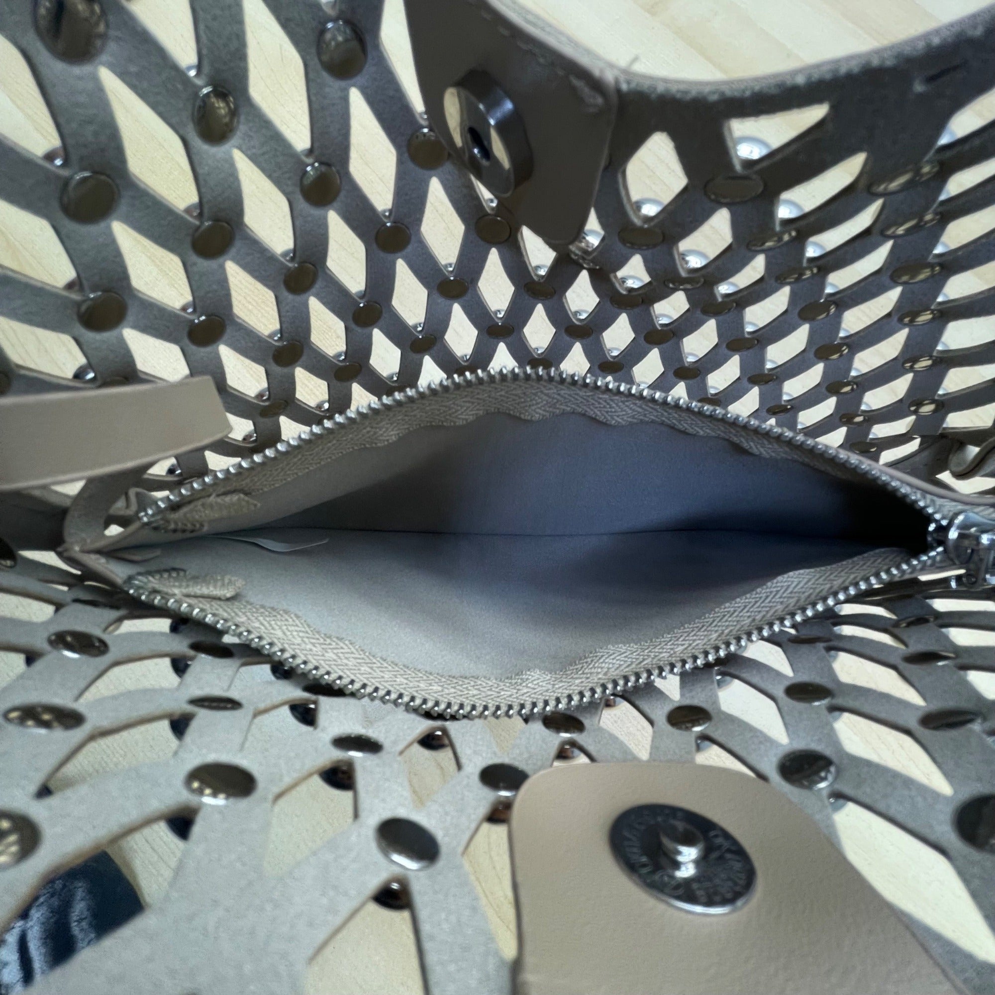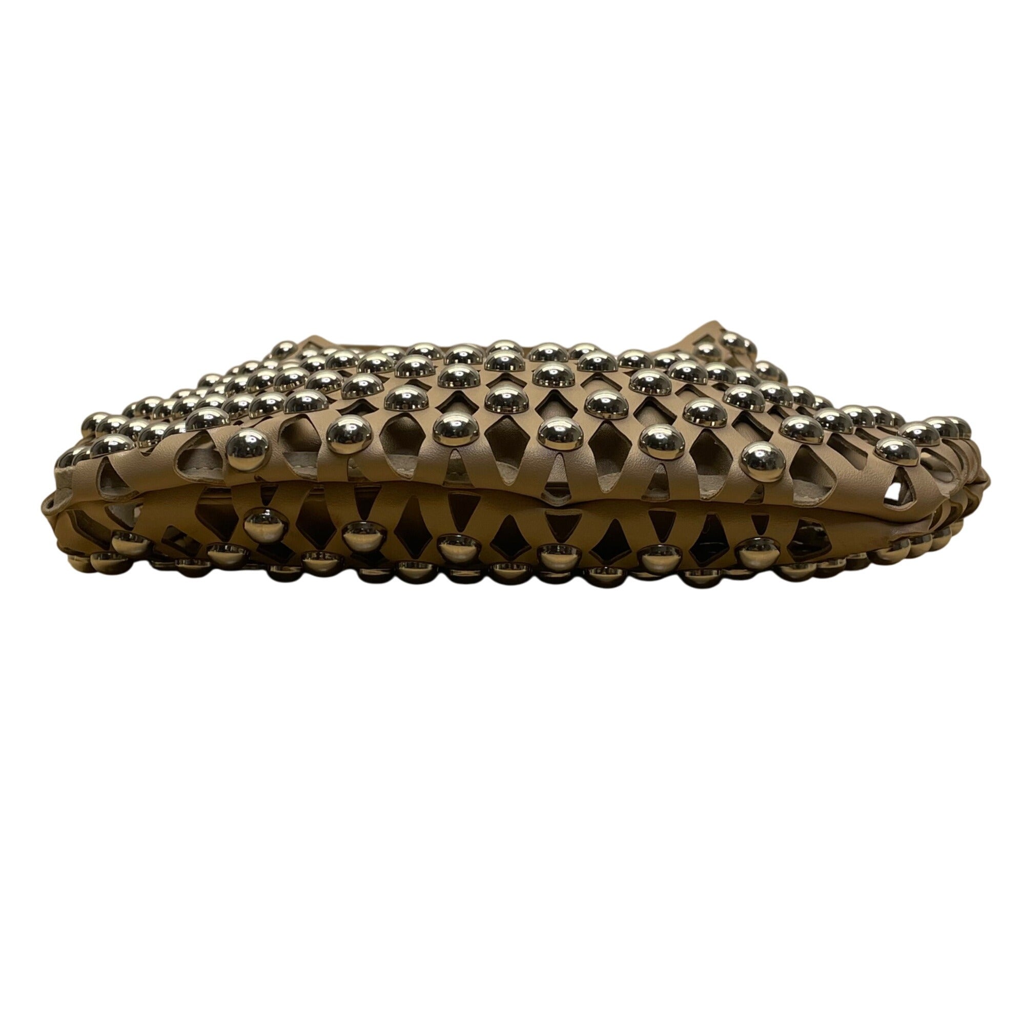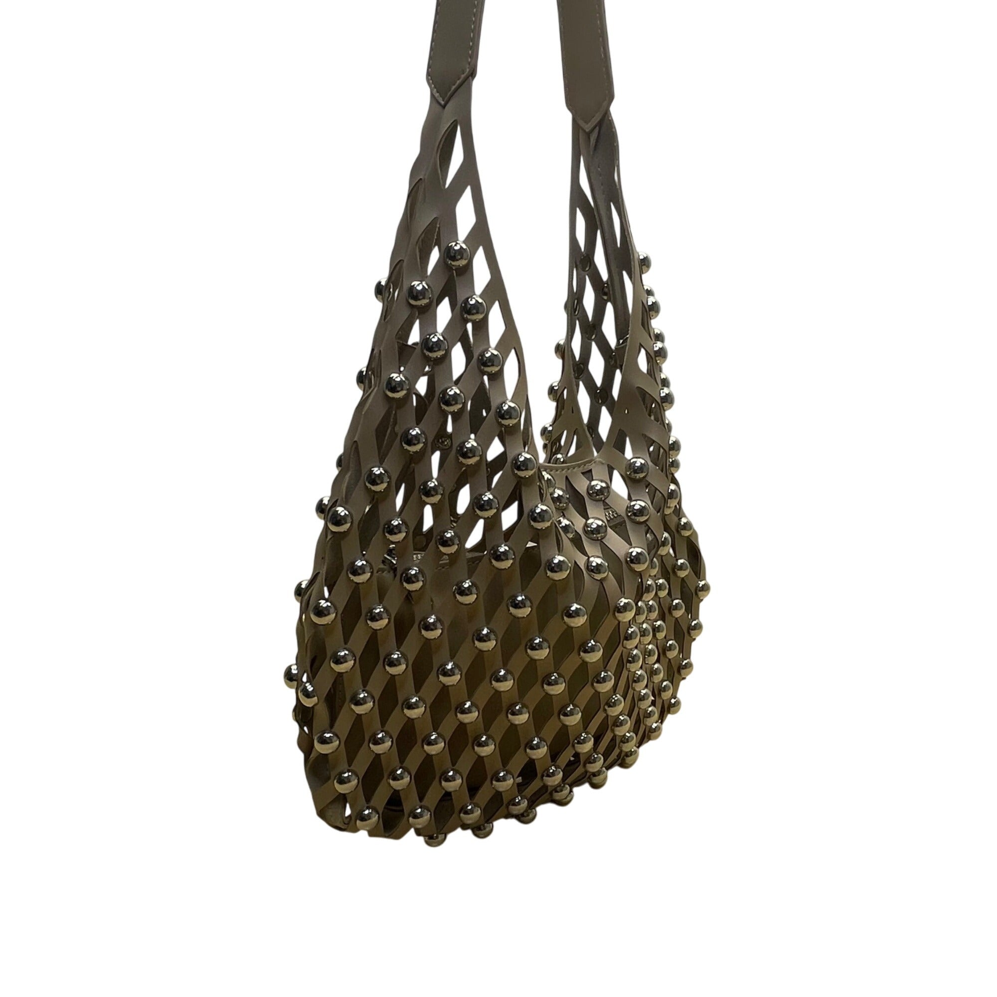 Studded Taupe Brown Faux Leather Shoulder Bag With Open Lattice Style Size M