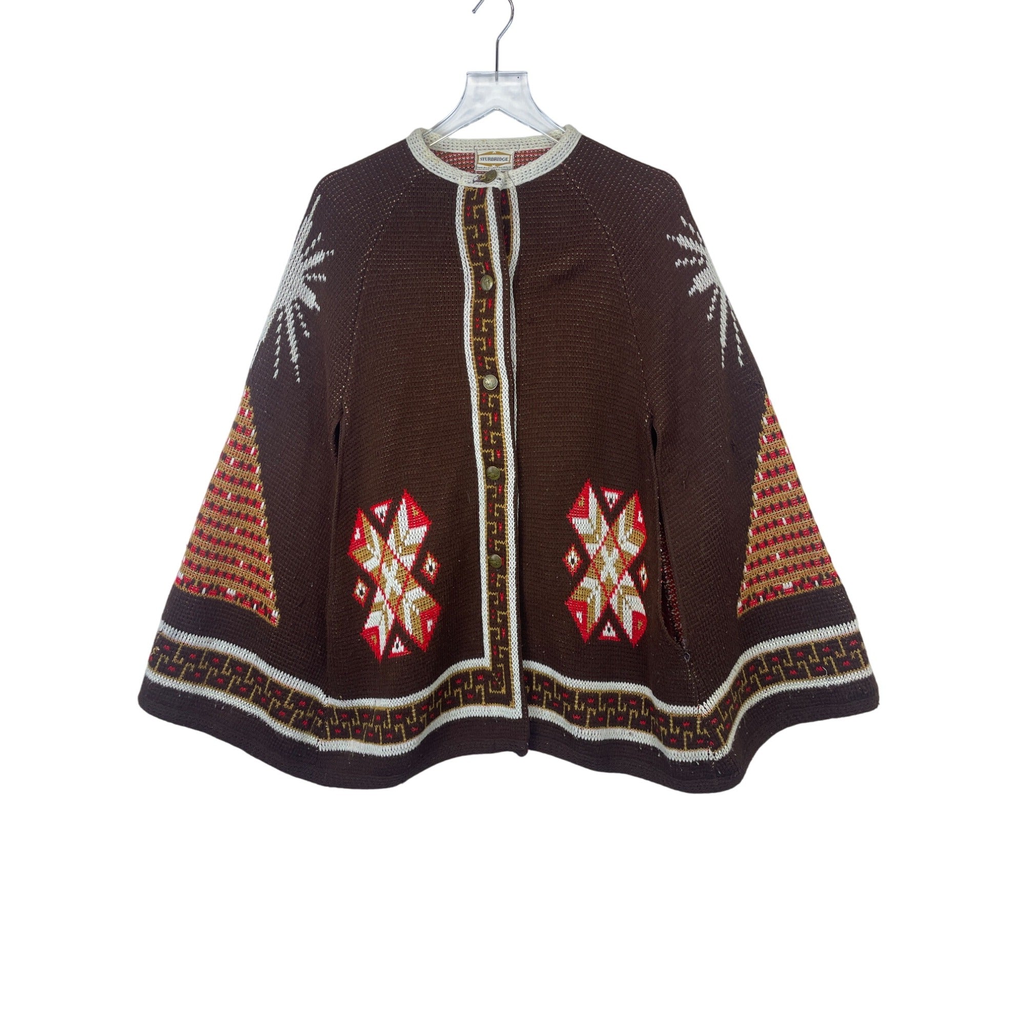 Sturbridge Womens Brown Acrylic Geometric Knit Cape Jacket Medium Button Front Warm Style