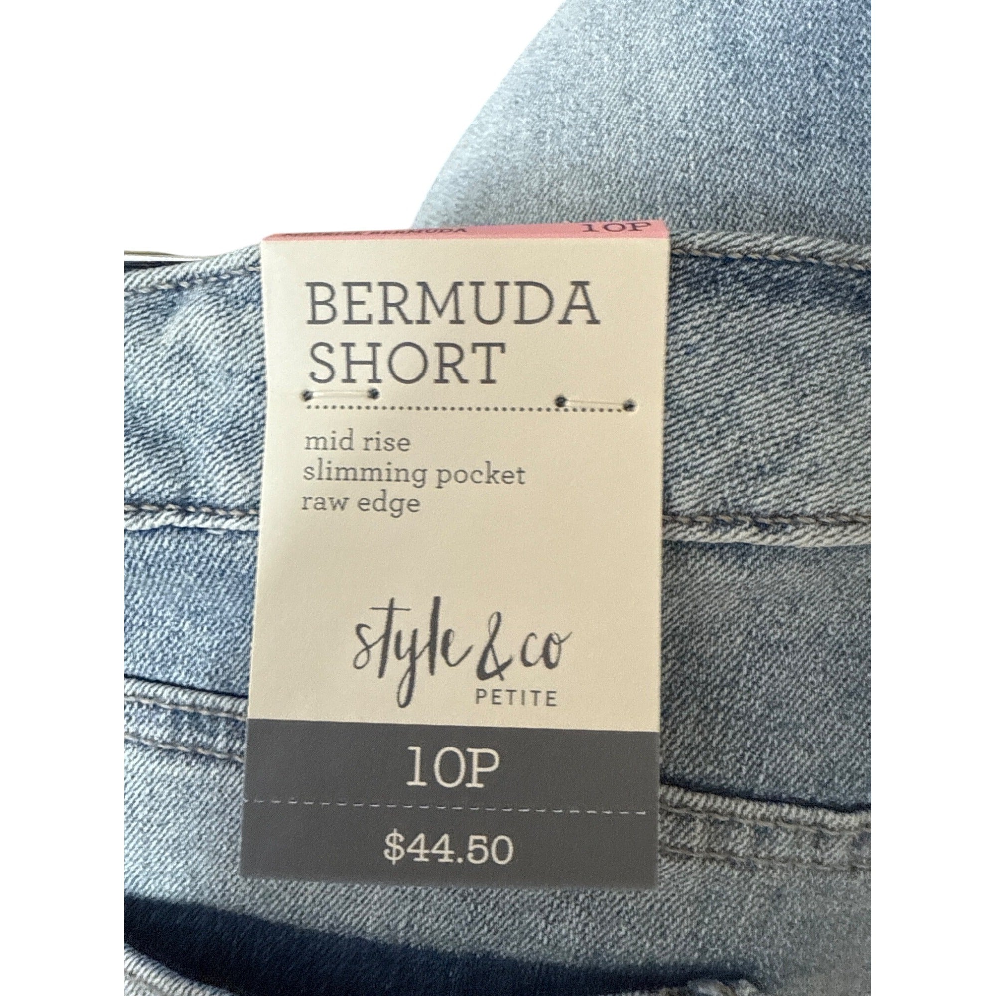 Style & Co Womens Light Blue Denim Bermuda Shorts Embroidered Mid Rise Raw Edge 10P