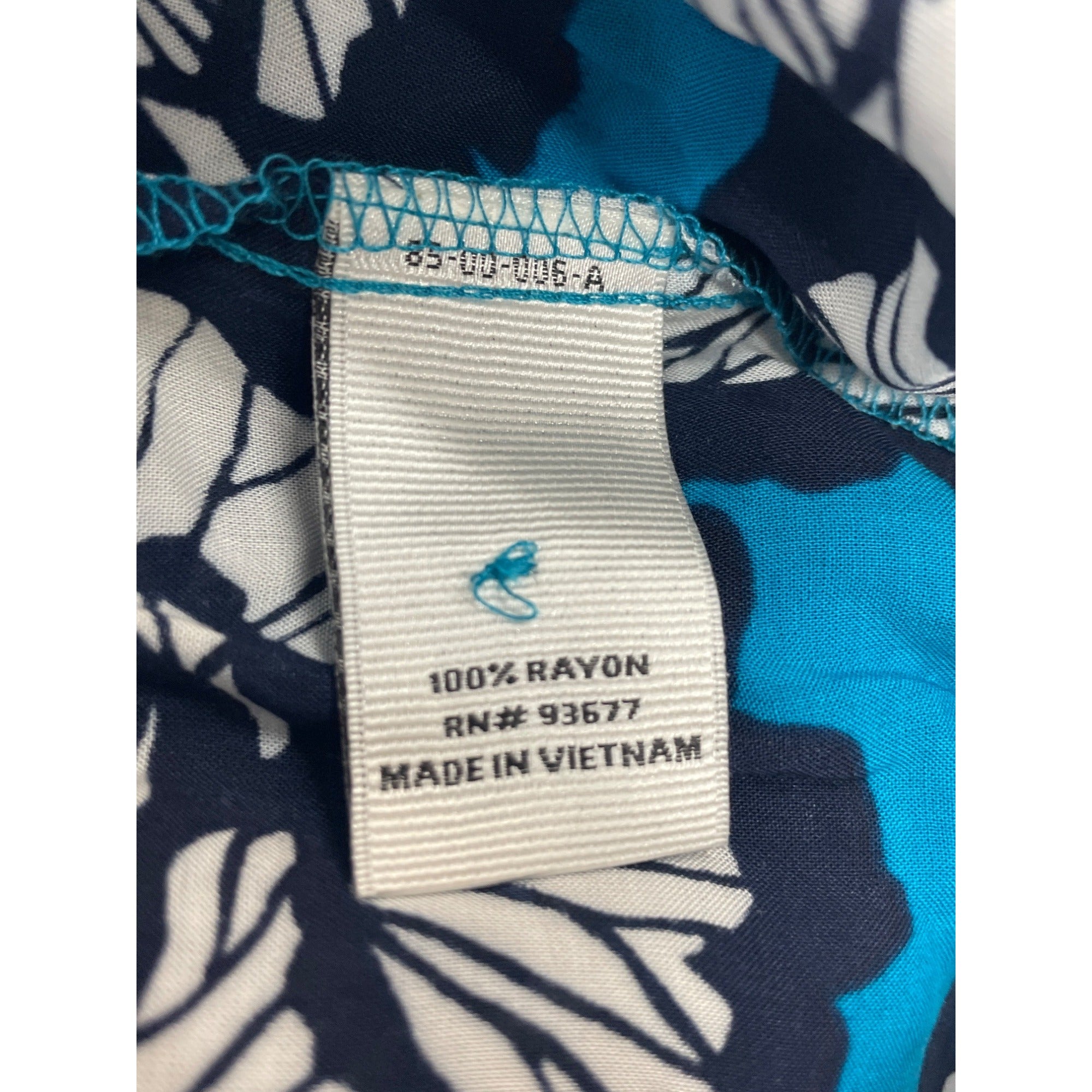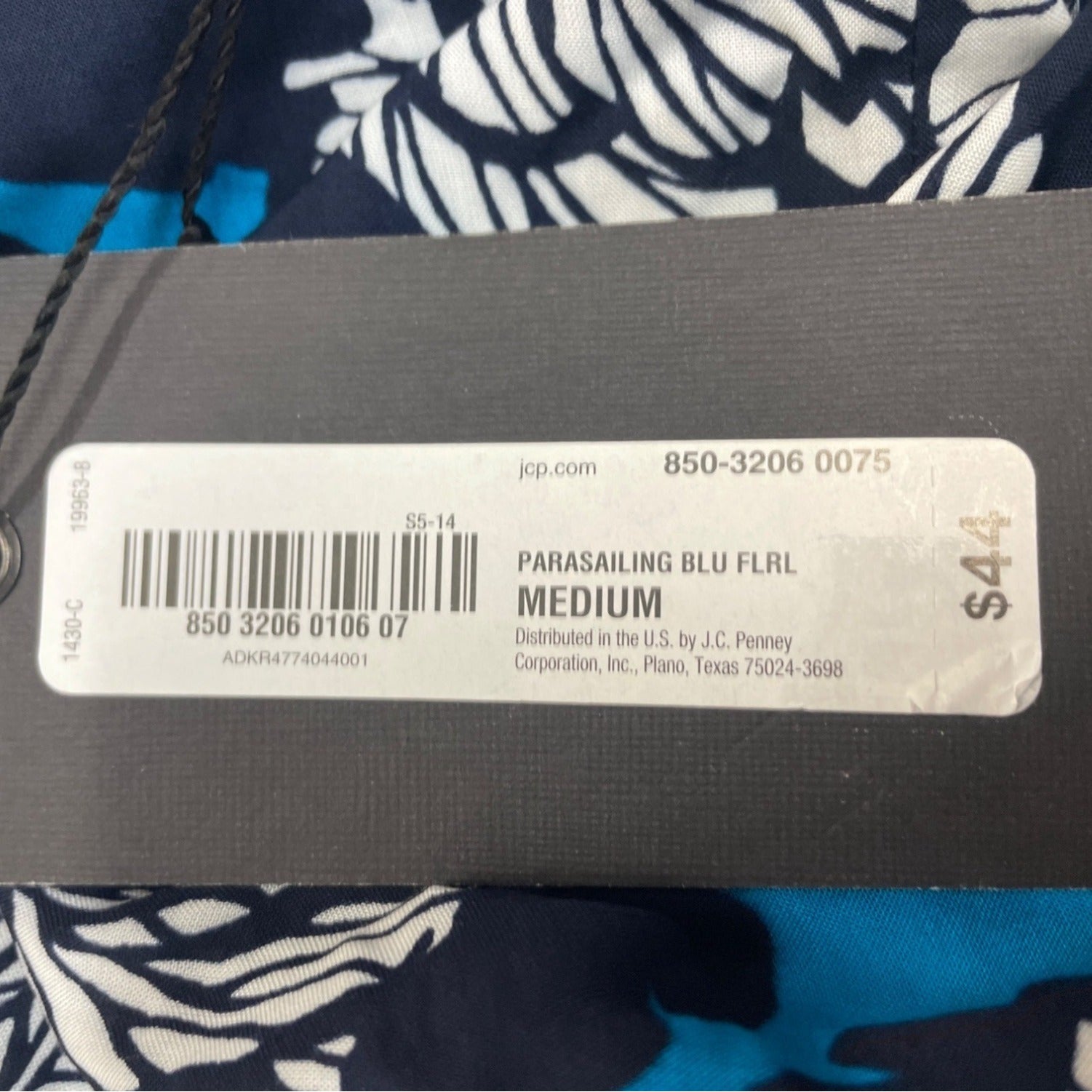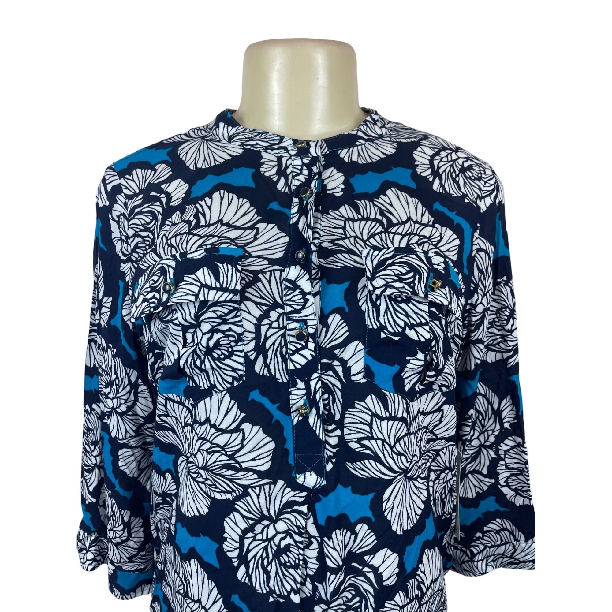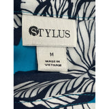 Stylus Women's Black White and Blue Floral Art Blouse Sz M -NWT