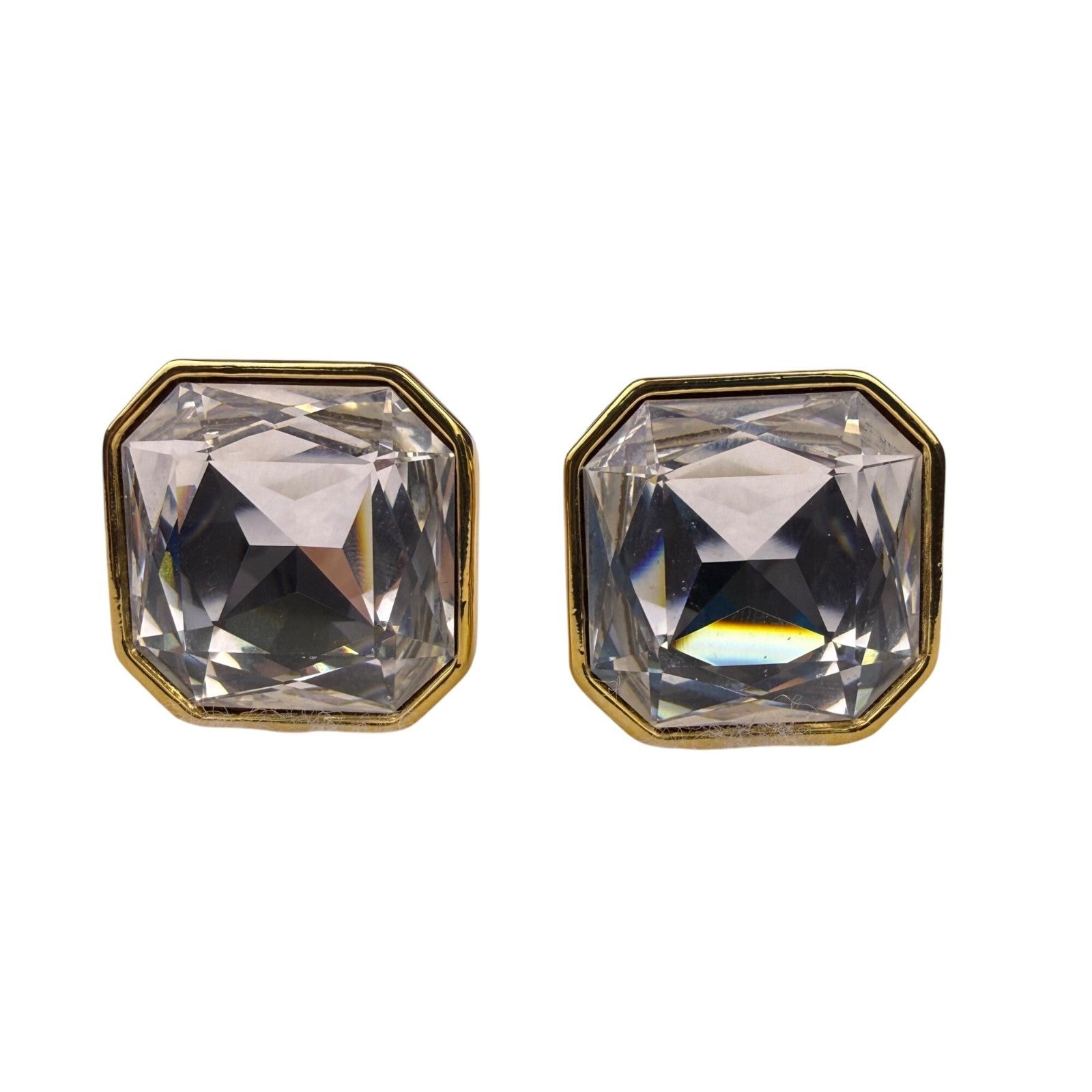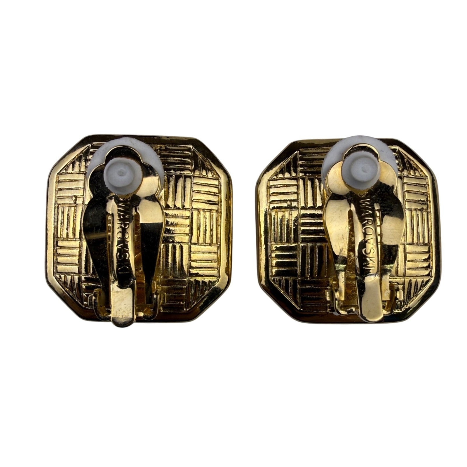 Swarovski Womens Gold Tone Crystal Clip-On Earrings Square Clear Stones