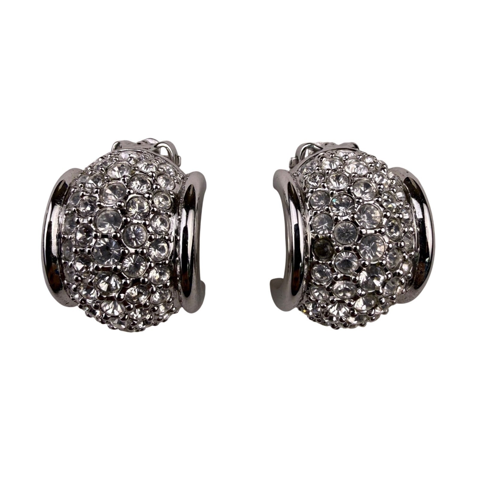 Swarovski Womens Silver Tone Crystal Pave Clip-On Earrings Polished Vintage Styl