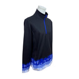 Talbots Women's Blue & Black Tie Dye Quarter Zip Pullover Shirt Size PL