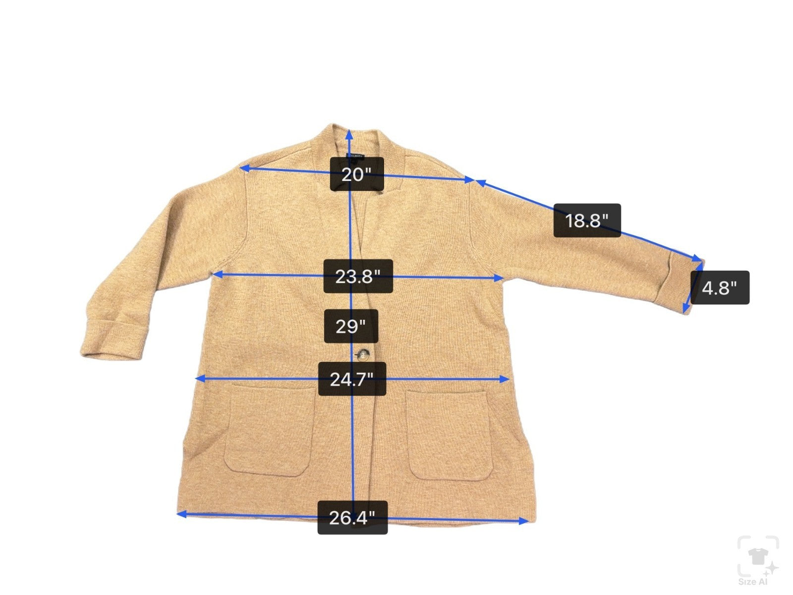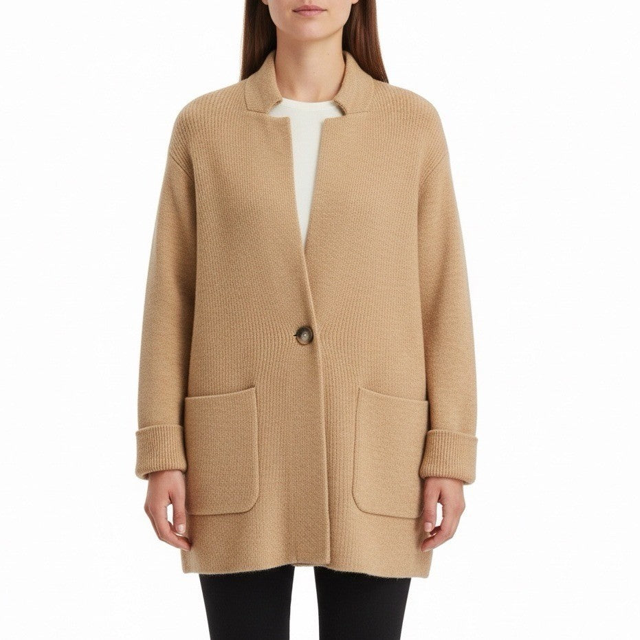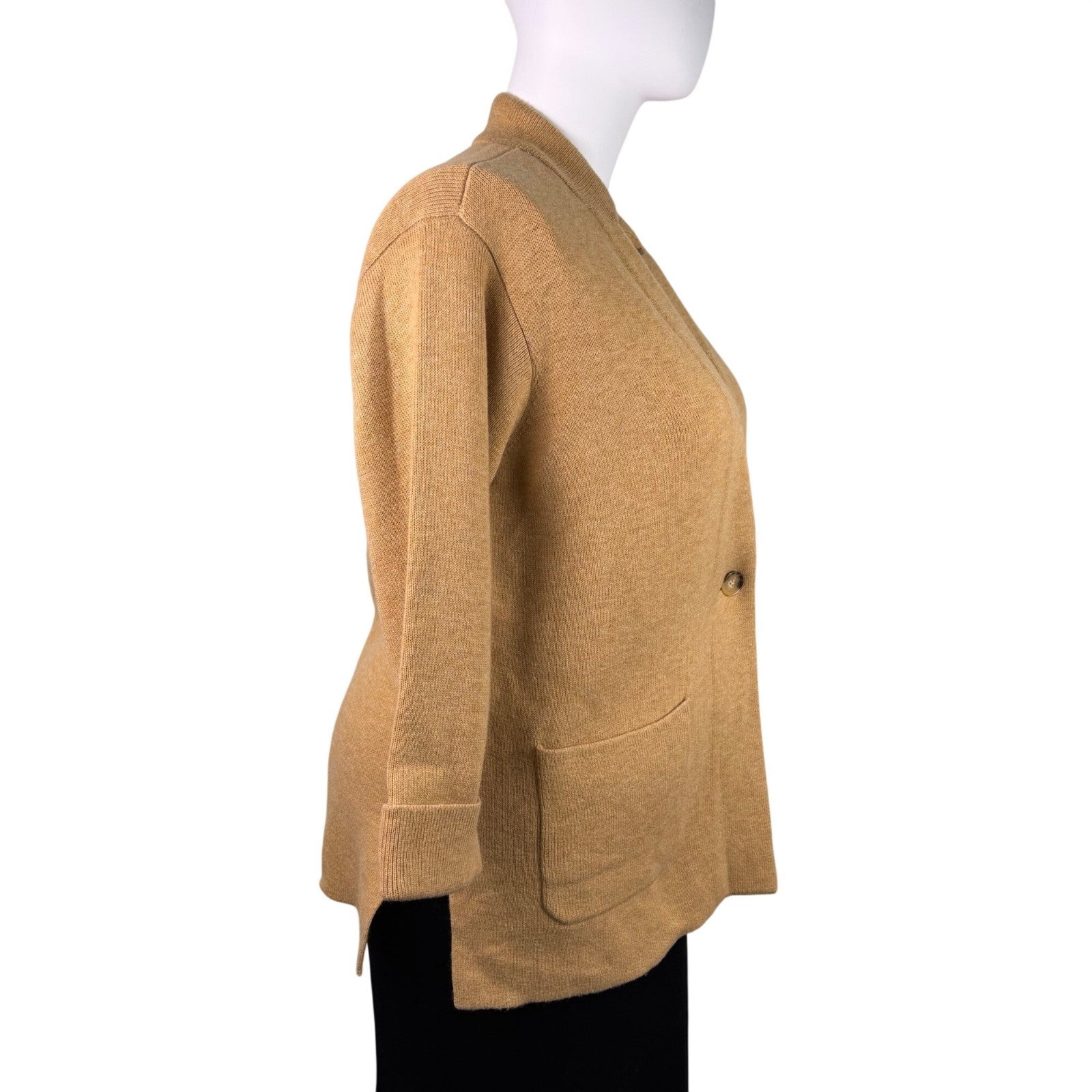 Talbots Womens Camel Nylon Wool Open Front Blazer Jacket With Pockets Size 2X