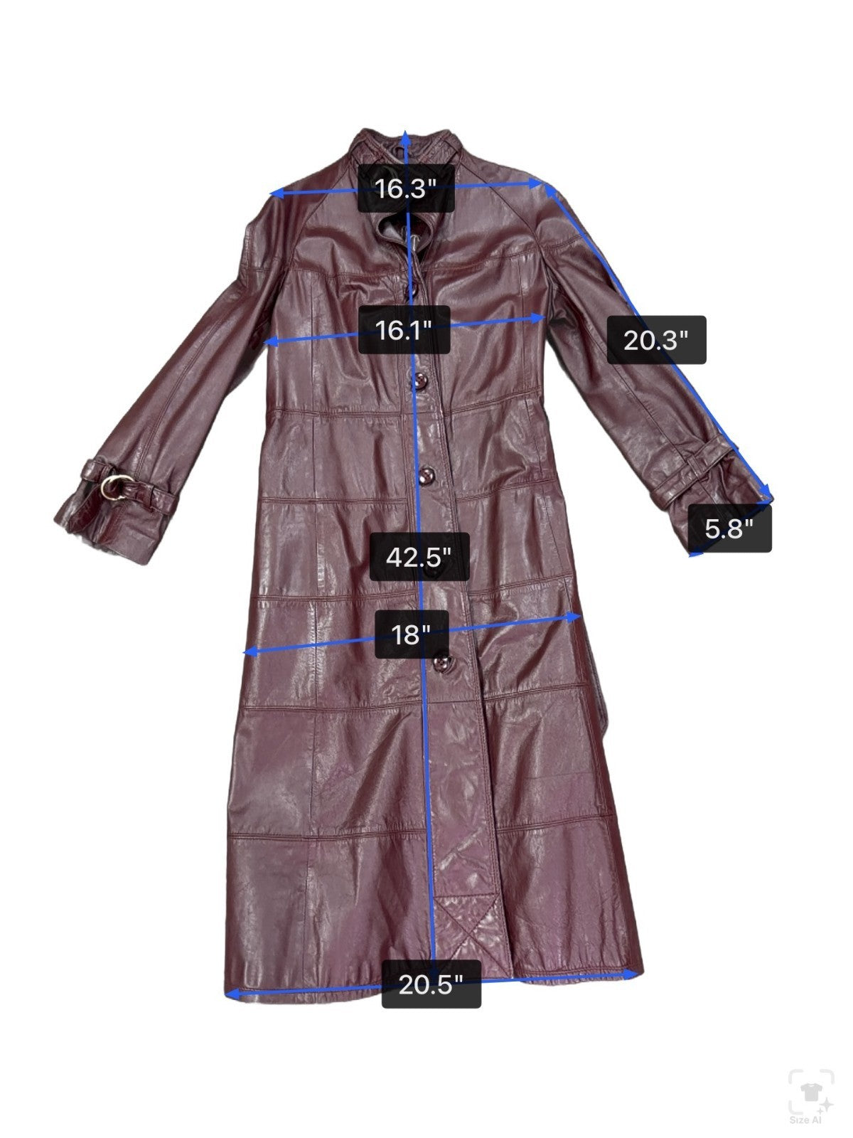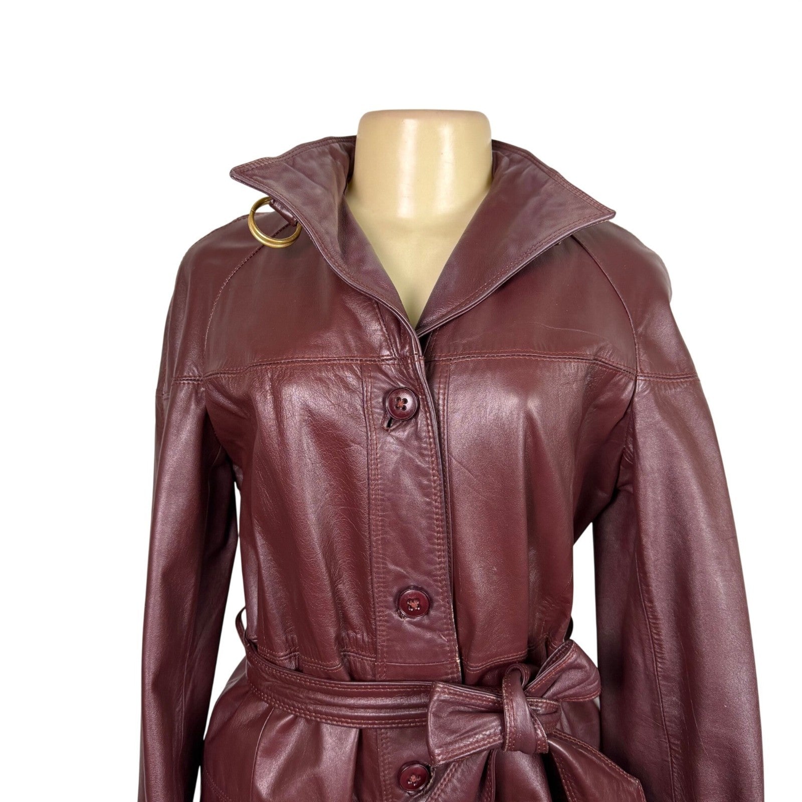 Tfc Women Maroon 100% Genuine Leather Belted Trench Coat Lined With Rayon Sz 8
