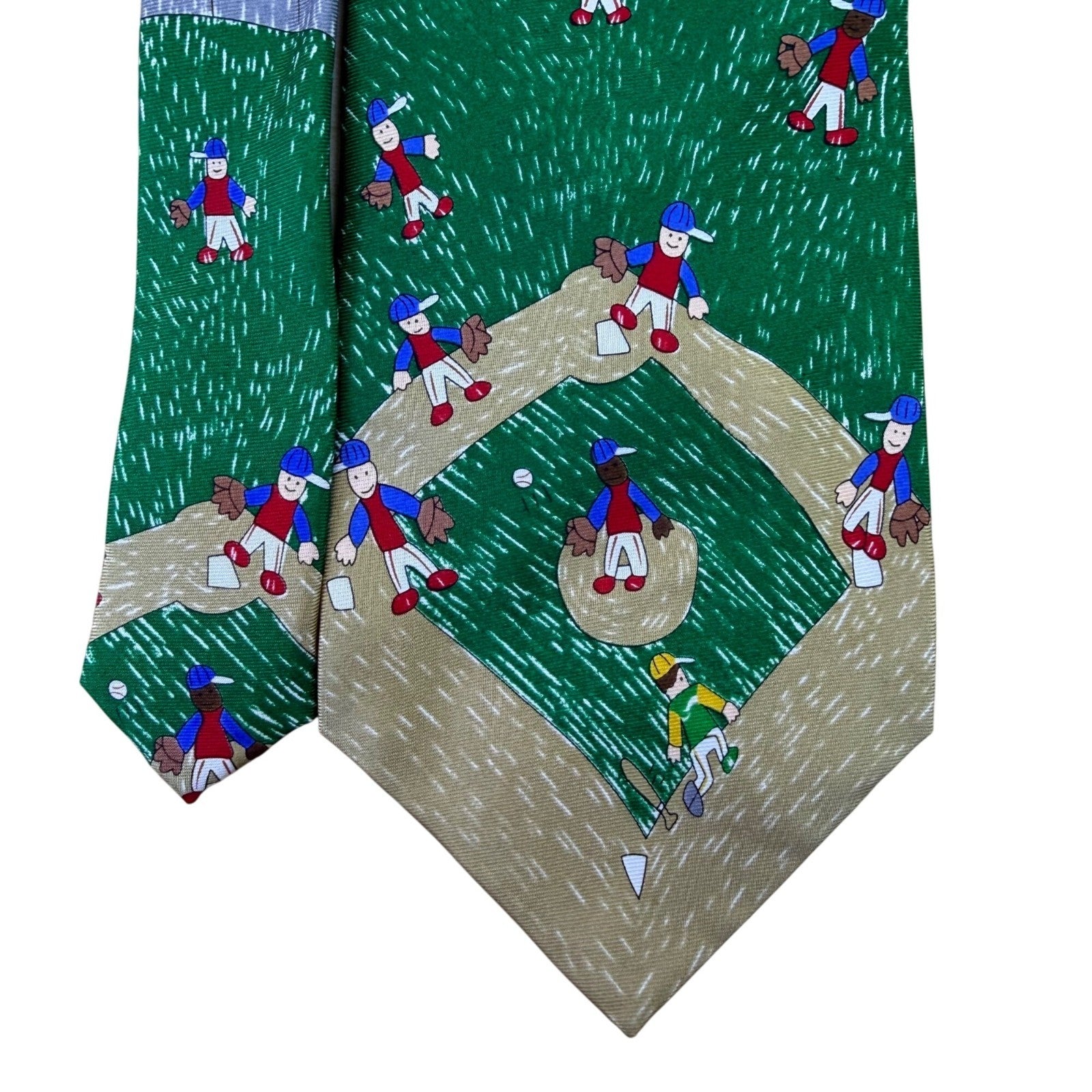 The Save The Children Mens Blue & Green Silk Baseball Print Tie Handmade Pattern