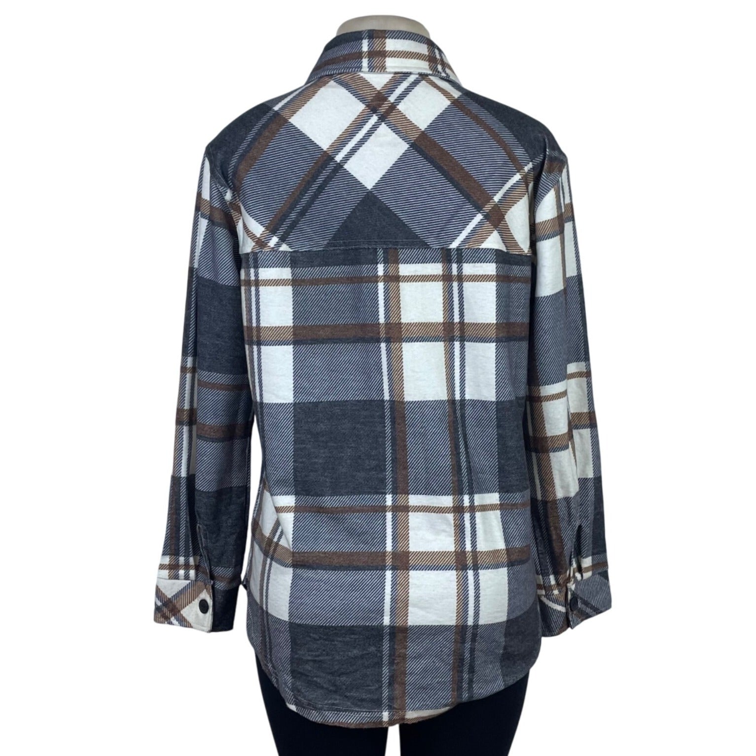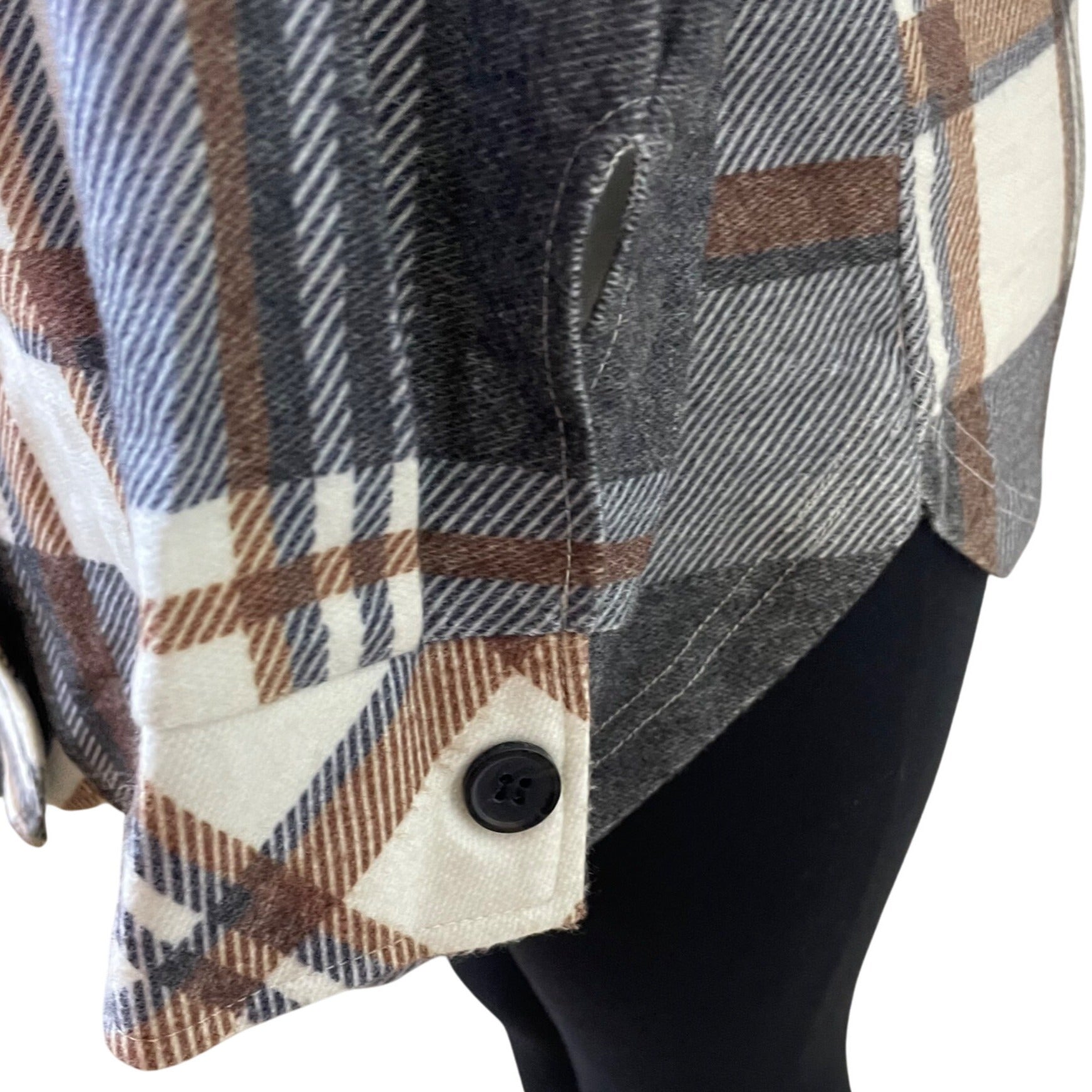 Thread & Supply Women's Brown/Gray Plaid Button Up Long Sleeve Flannel Shirt Size S