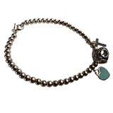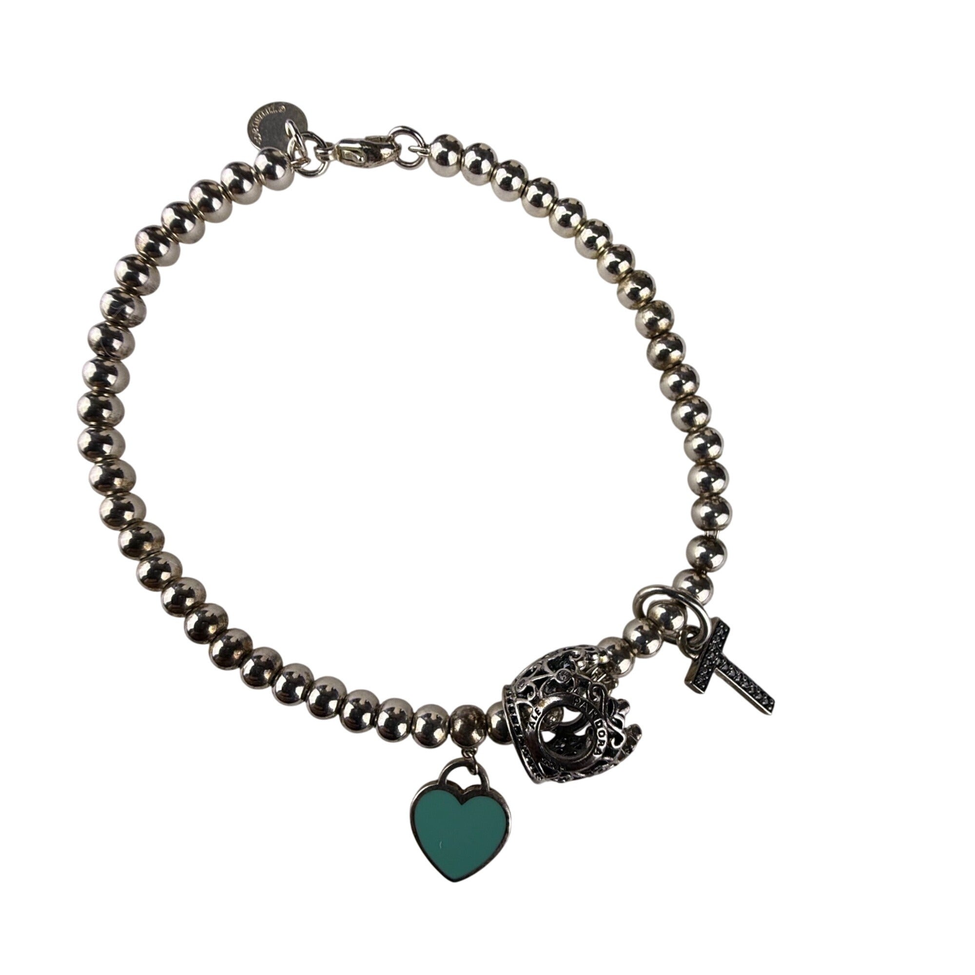 Tiffany & Co. AG925 Women's Silver Tone Beaded Charm Bracelet With Heart & Cross Charms
