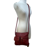 Tignanello Women’s Red Leather Exterior Magnetic Flap Pockets Crossbody Bag