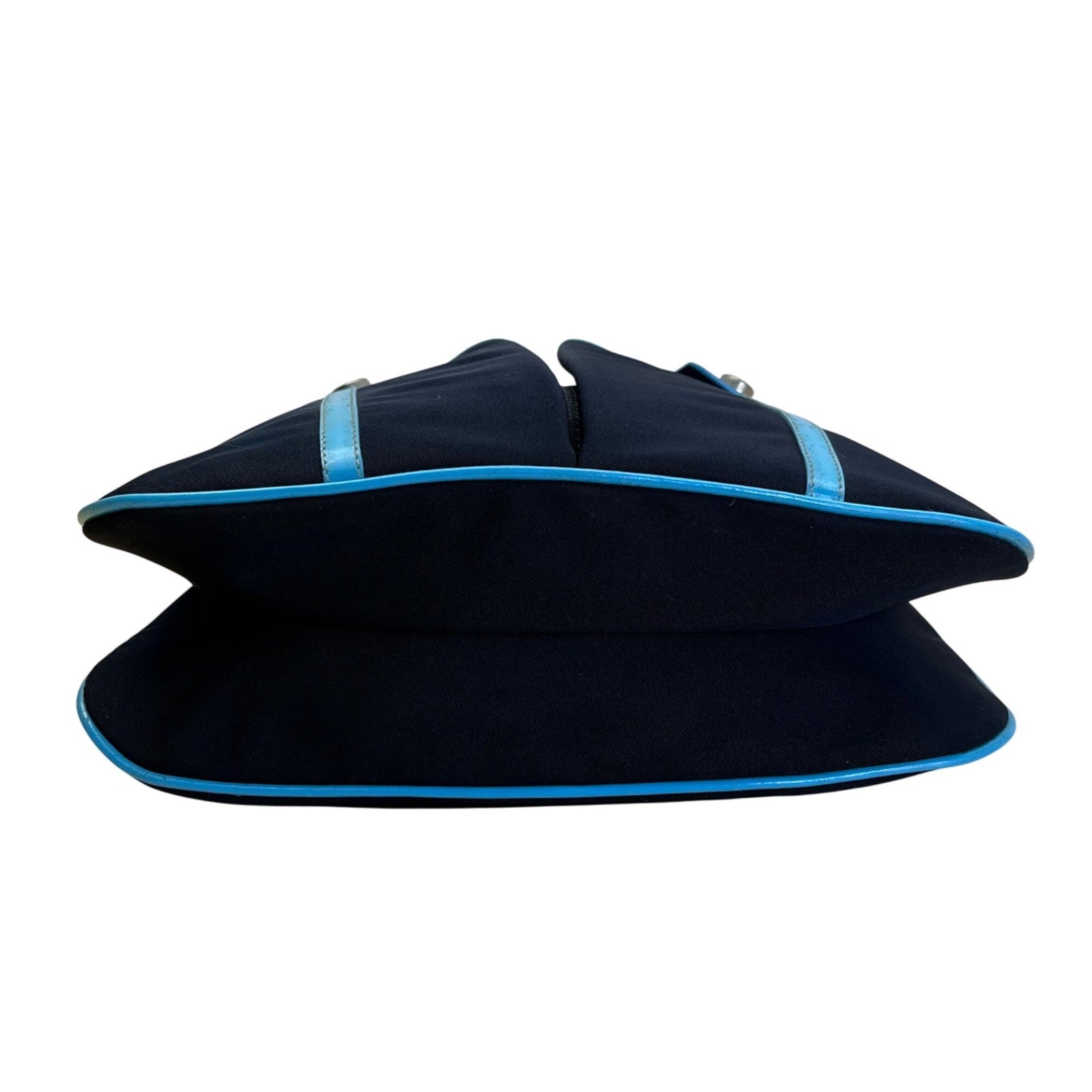 Tod’s Black & Blue Nylon Leather Trim With Silver Turn Lock Crossbody Bag