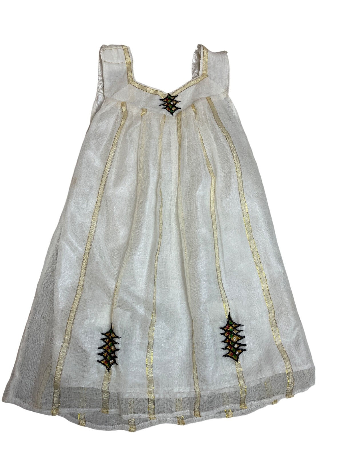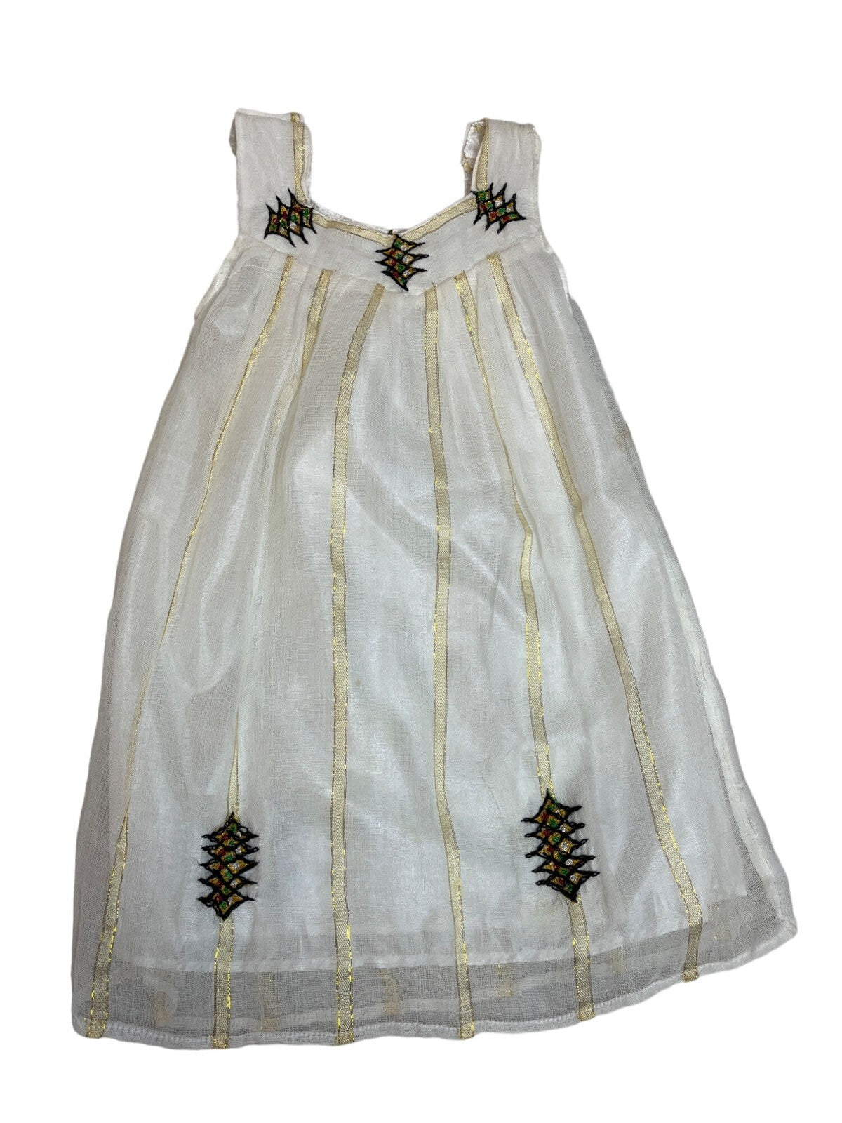 Traditional Girls White & Gold Embroidered Dress With Sleeveless Design