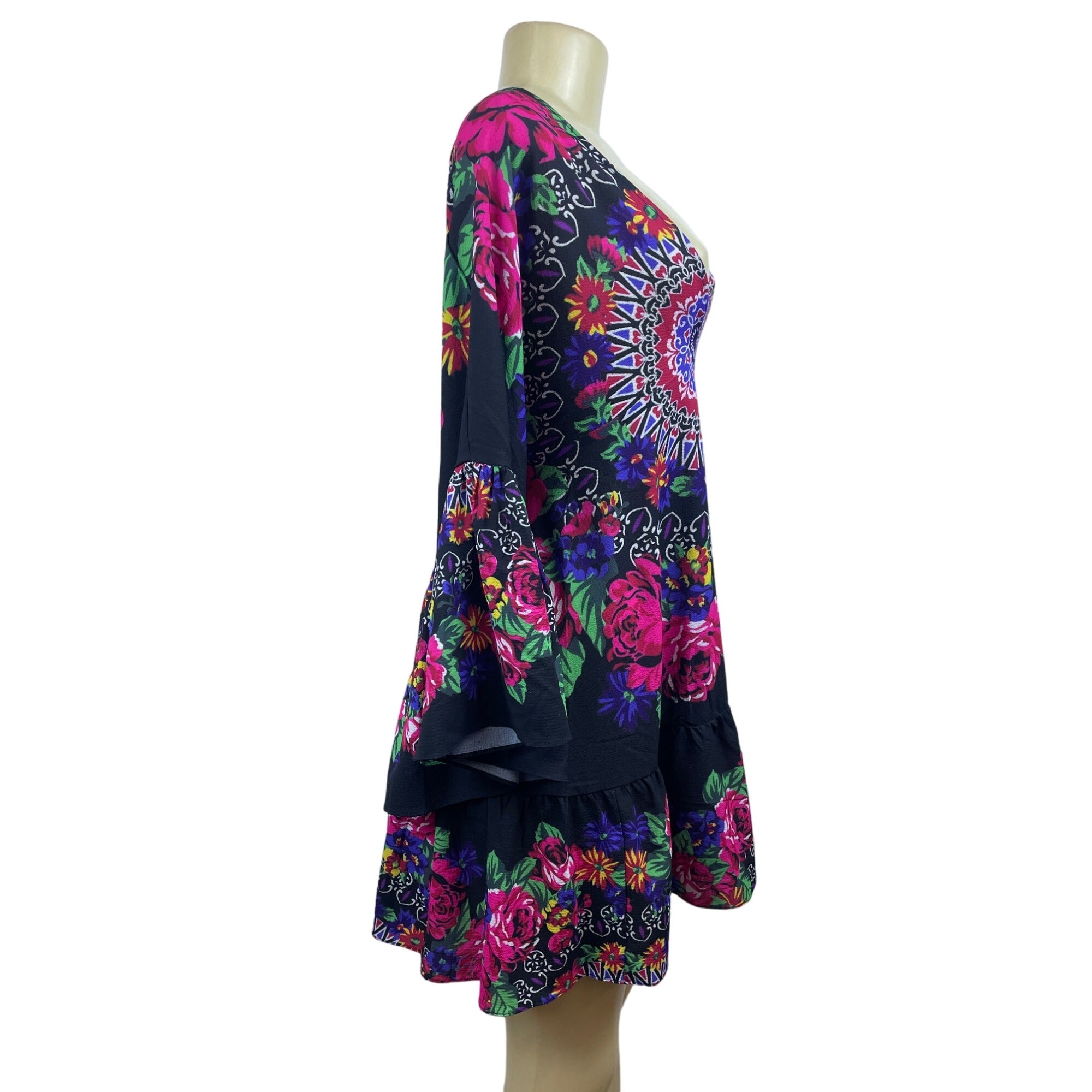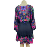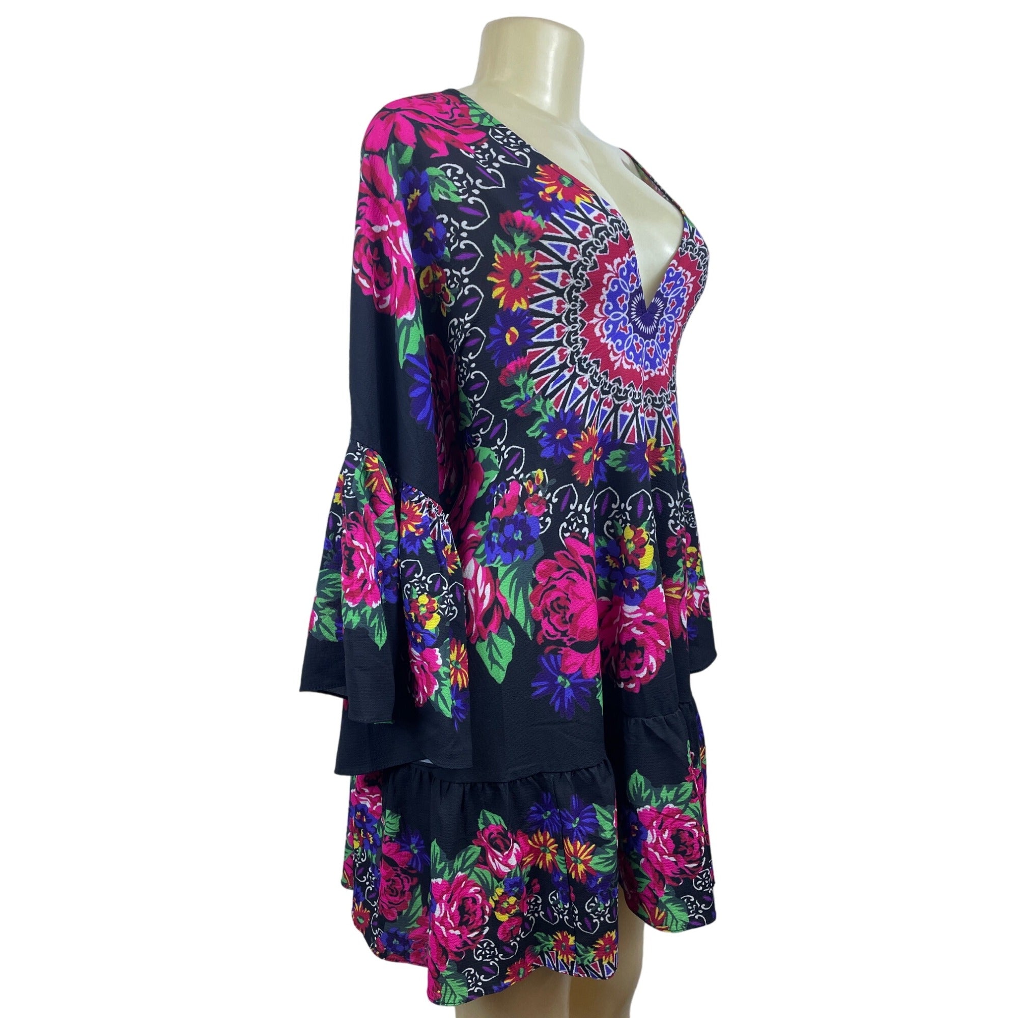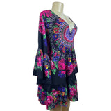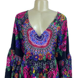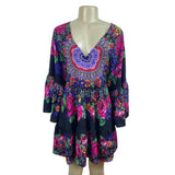 Umgee Women’s Multicolor Low-Cut Boho Style V Collar Dress Sz M - NWT