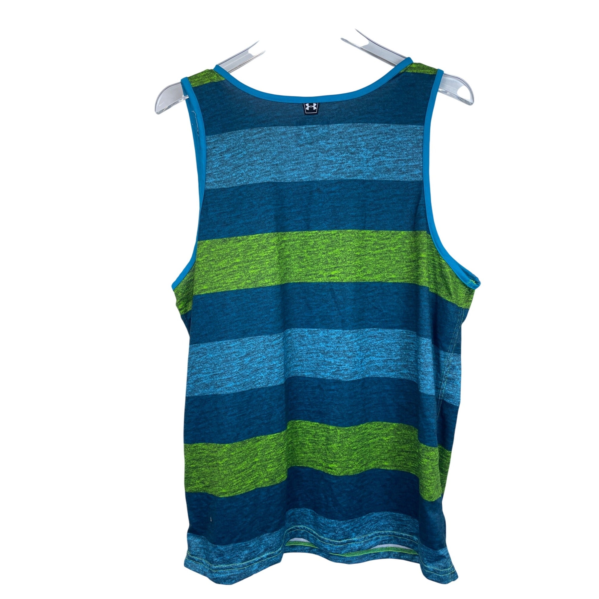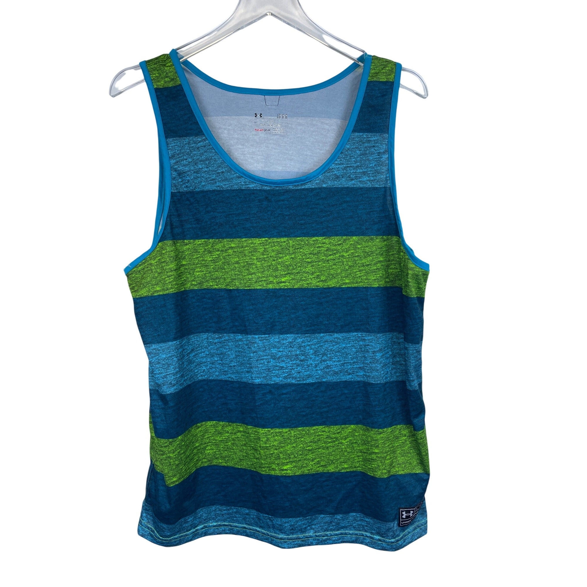 Under Armour Mens Blue & Green Striped Loose Fit HeatGear Tank Top Size L