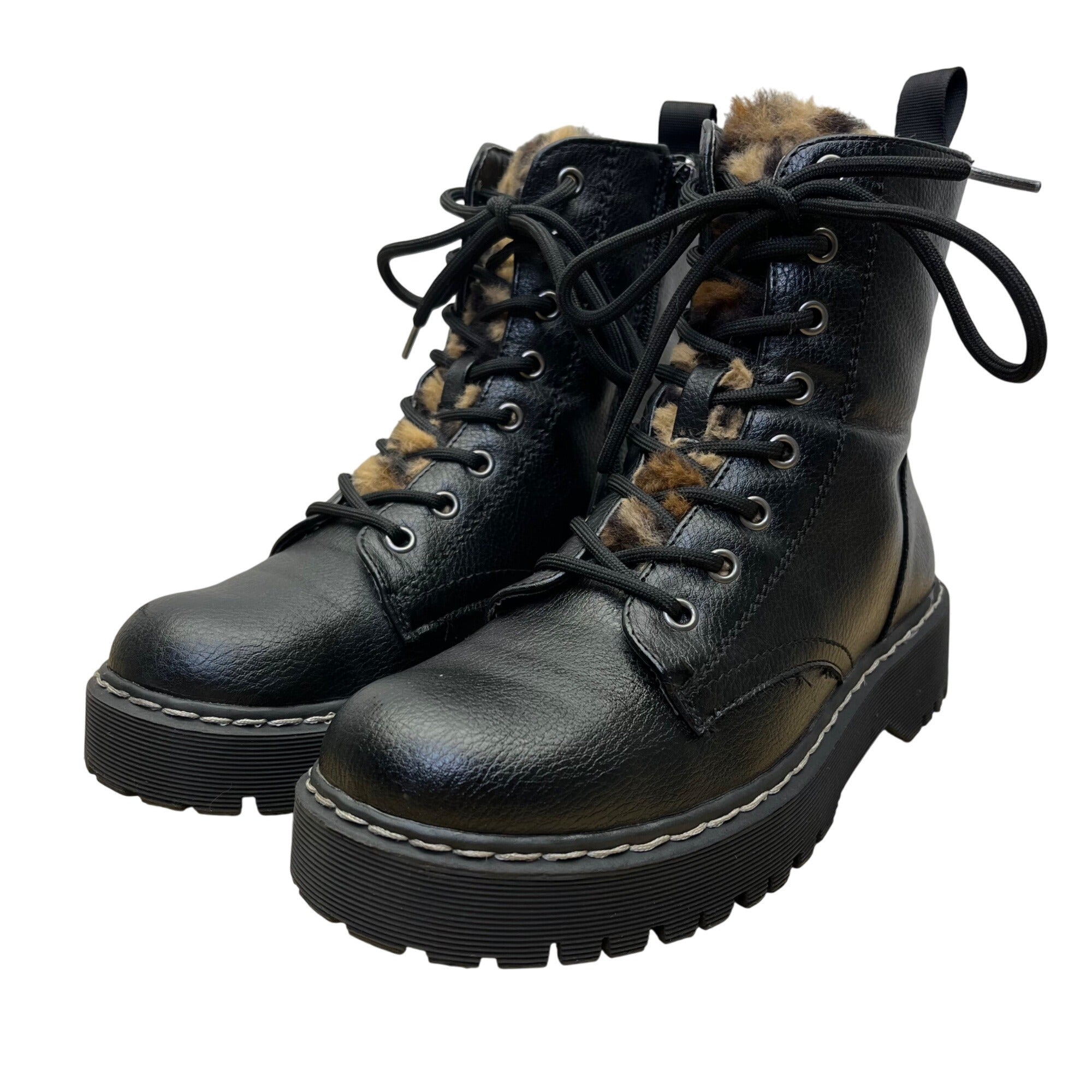 Unionbay Women’s Black Faux Fur-Lined Lace-Up Hayden Combat Boots Size 7M