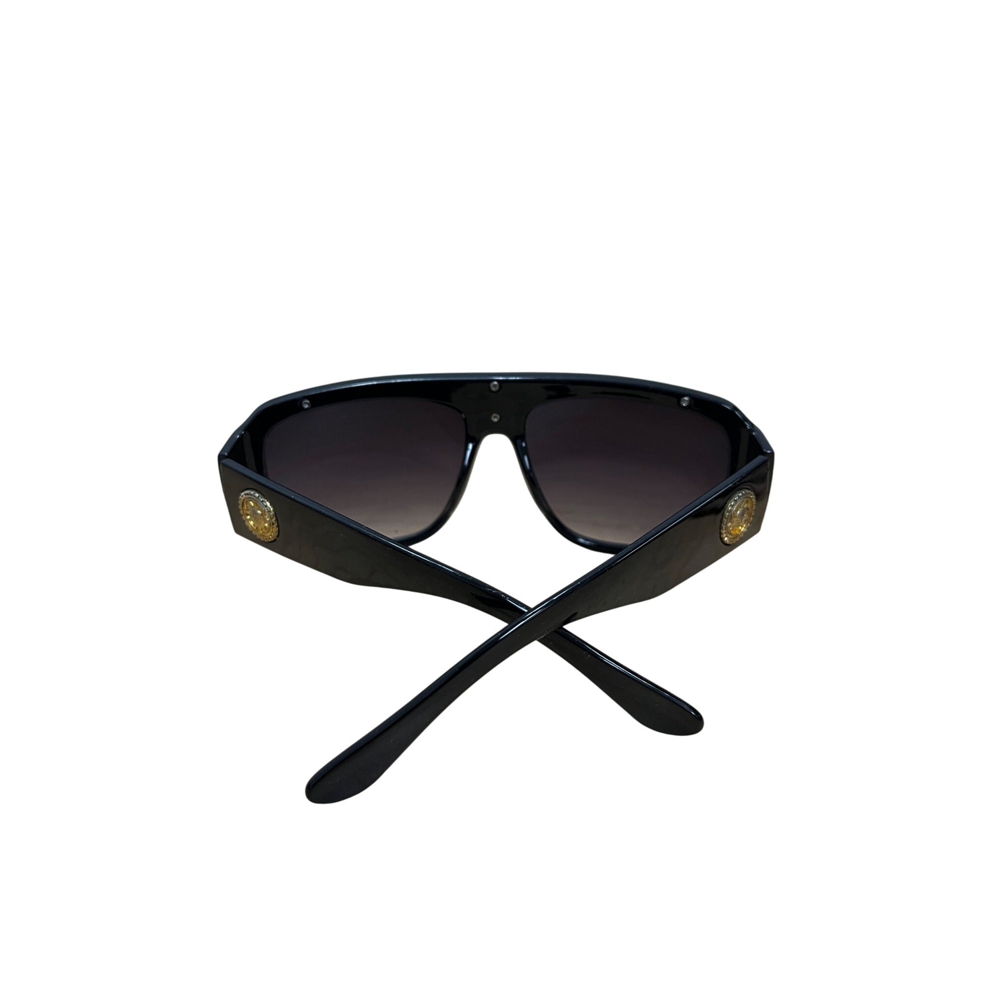 Unisex Black Acetate Sunglasses Featuring Gold Medusa Accent Oval Gradient Lenses