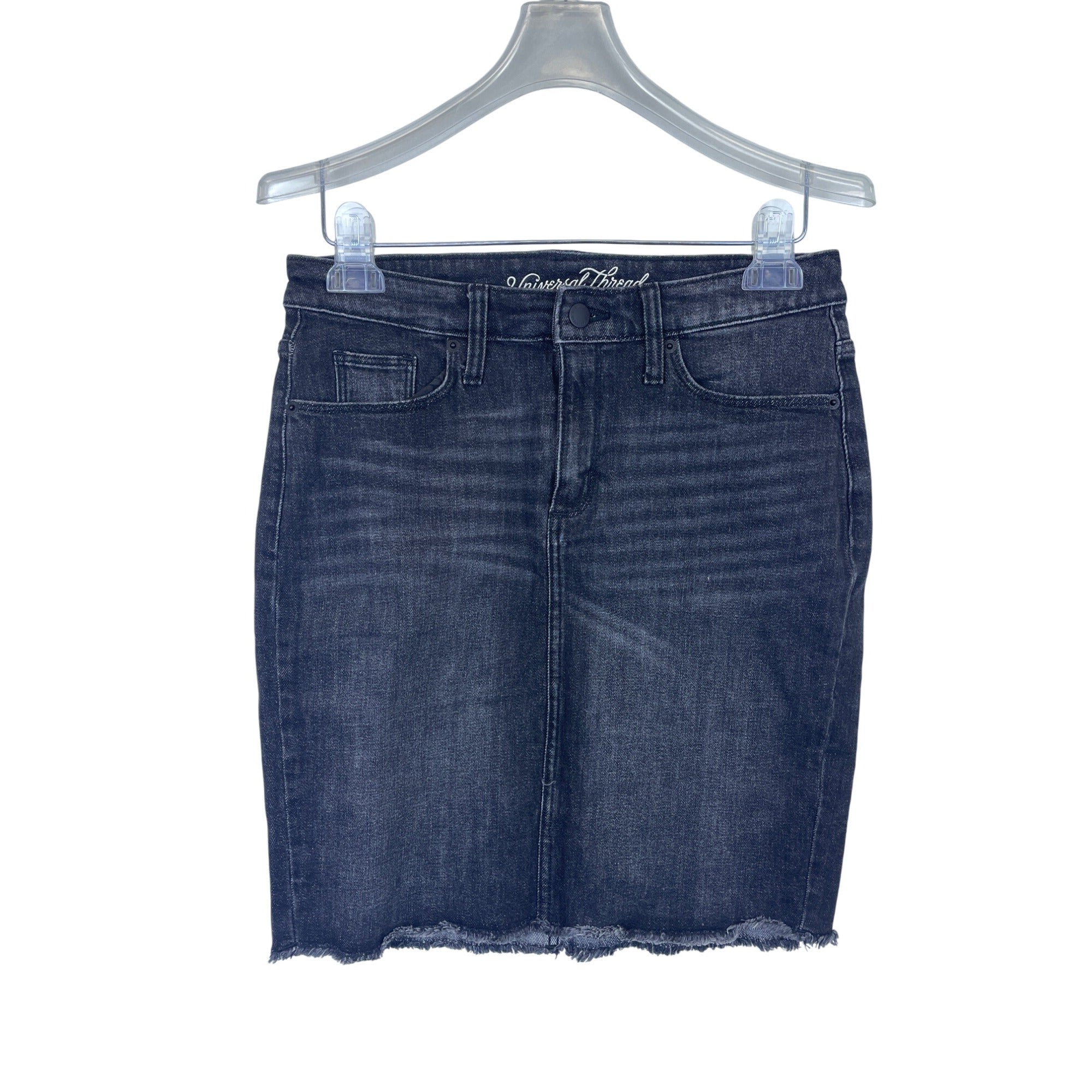 Universal Thread Womens Black Denim Frayed Hem Casual Skirt Size 6/28R