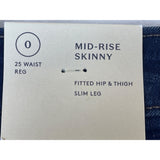 Universal Thread Womens Blue Denim Mid-Rise Skinny Jeans Fitted Waist Slim Leg Size 0
