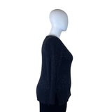 V-Neck Black Metallic Knit Long Sleeve Sweater Womens Pullover