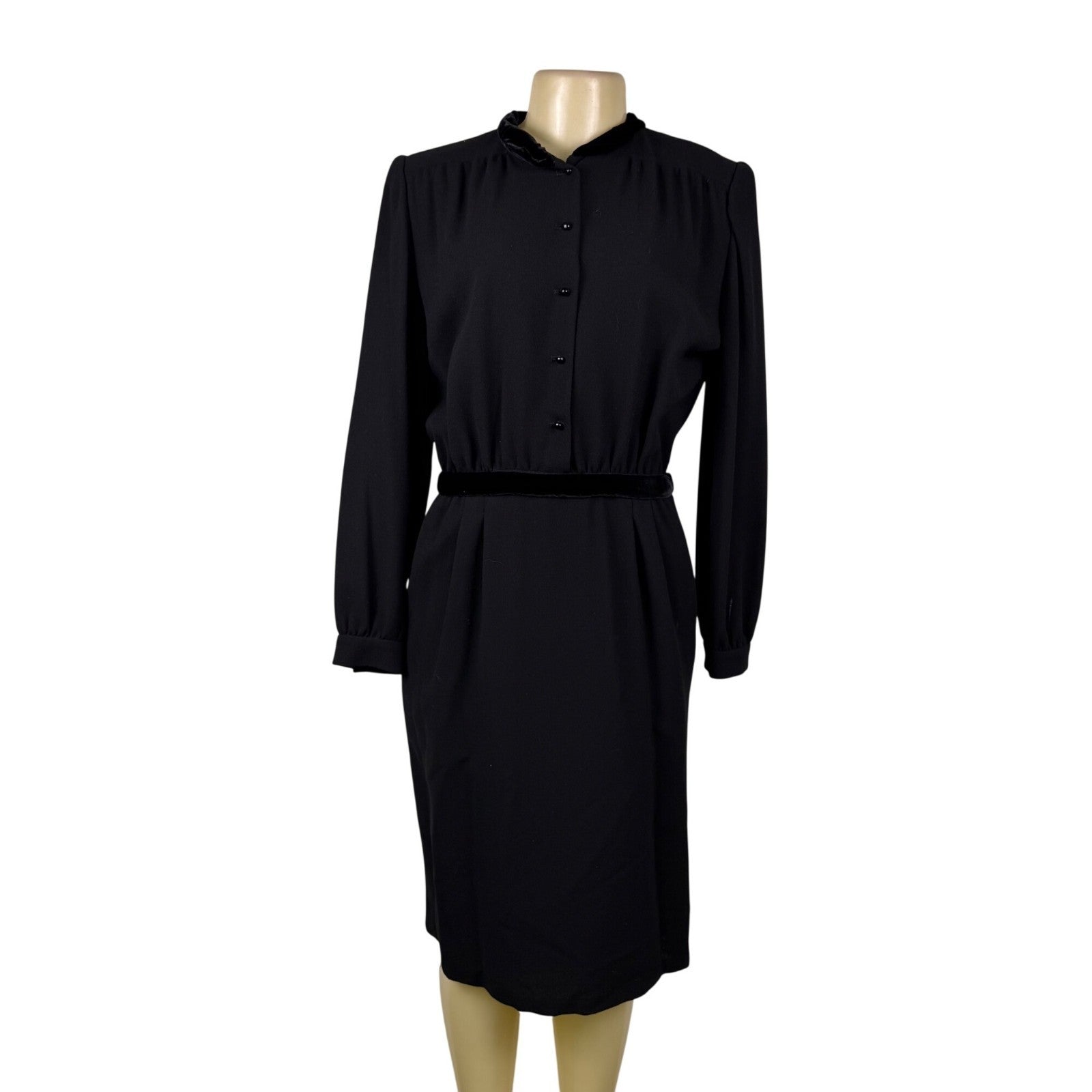 Valentino Womens Black Silk Long Sleeve Button-Down Belted Midi Dress Size 10