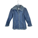 Vecchio Ponte Girls Blue Shearling Lamb Button-Up Jacket 10Y Made In Italy Soft Fur Lining