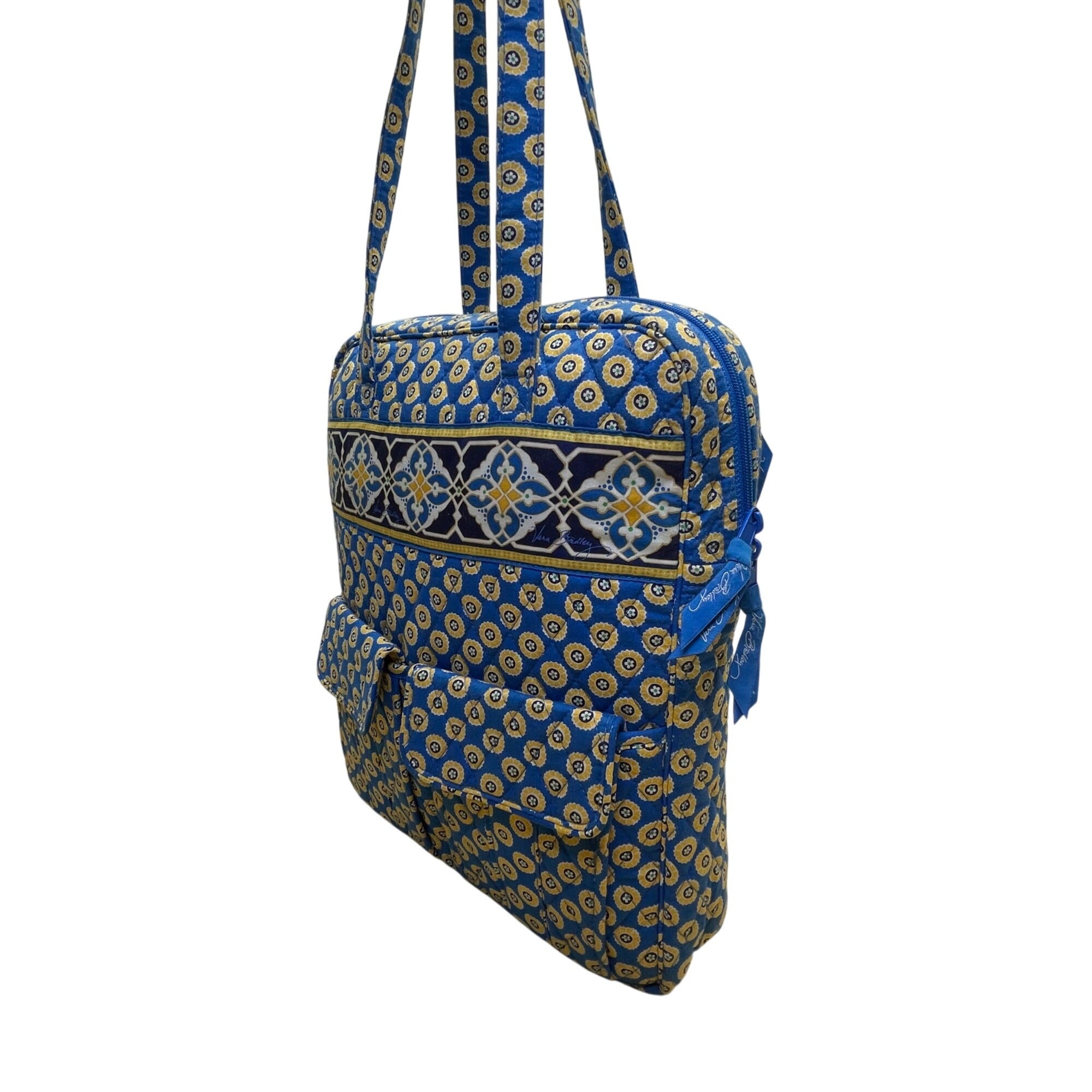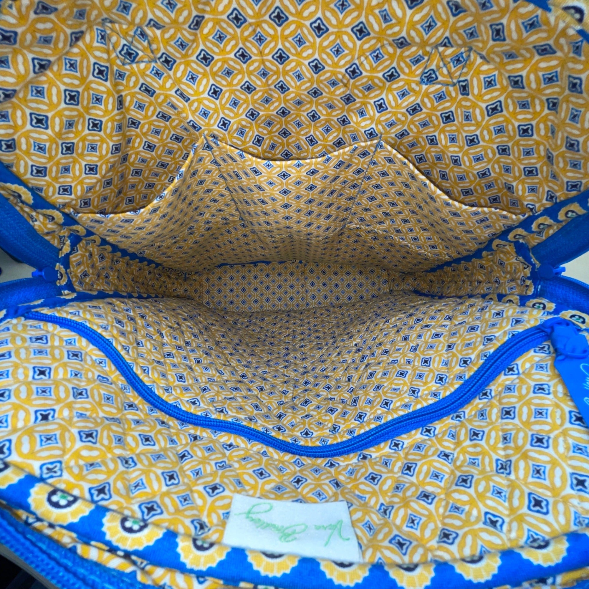 Vera Bradley Blue & Yellow Patterned Quilted Zip Closure & Pockets Shoulder Bag