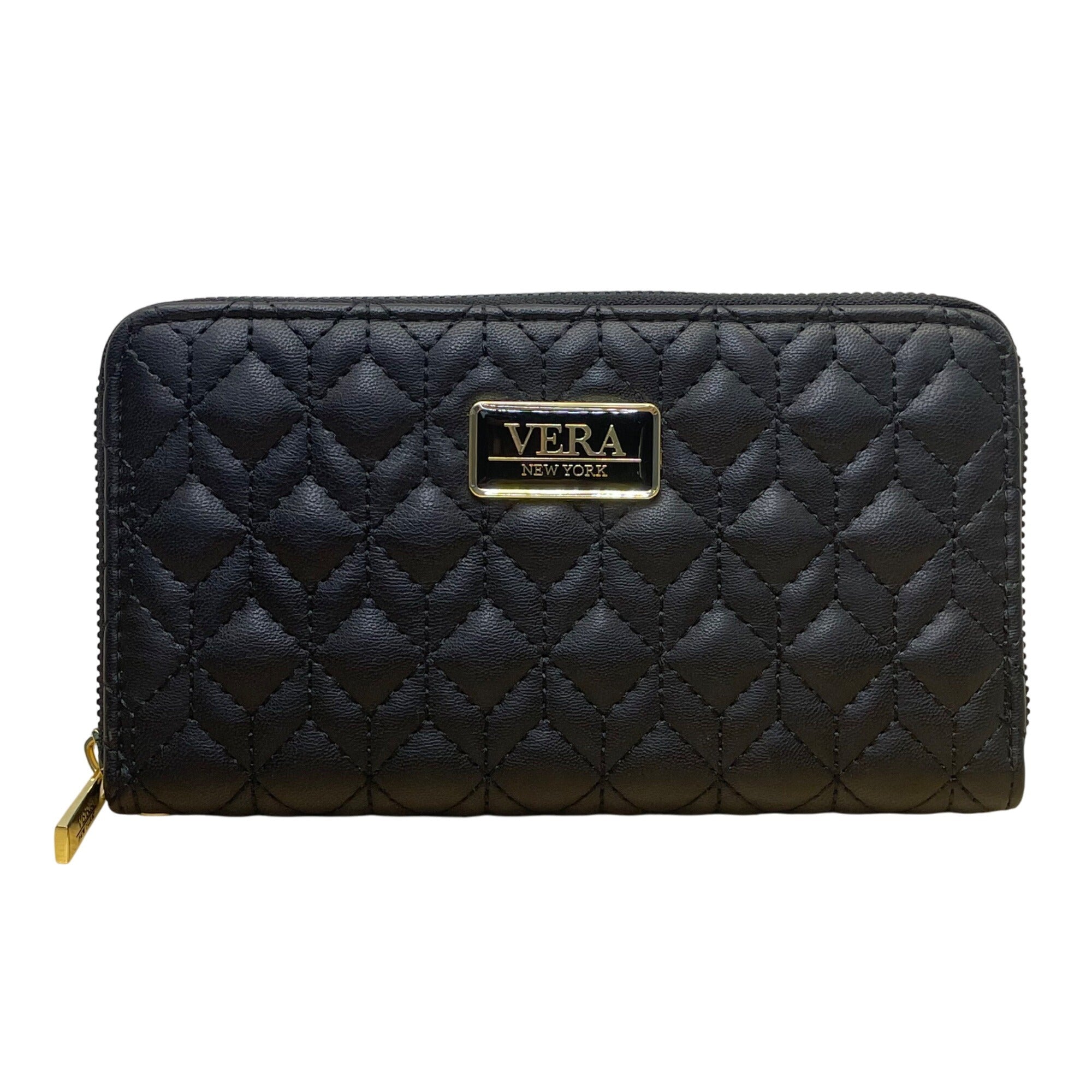 Vera New York Women’s Black Quilted Faux Leather Goldtone Logo Zip-Around Wallet