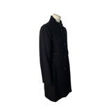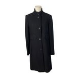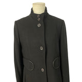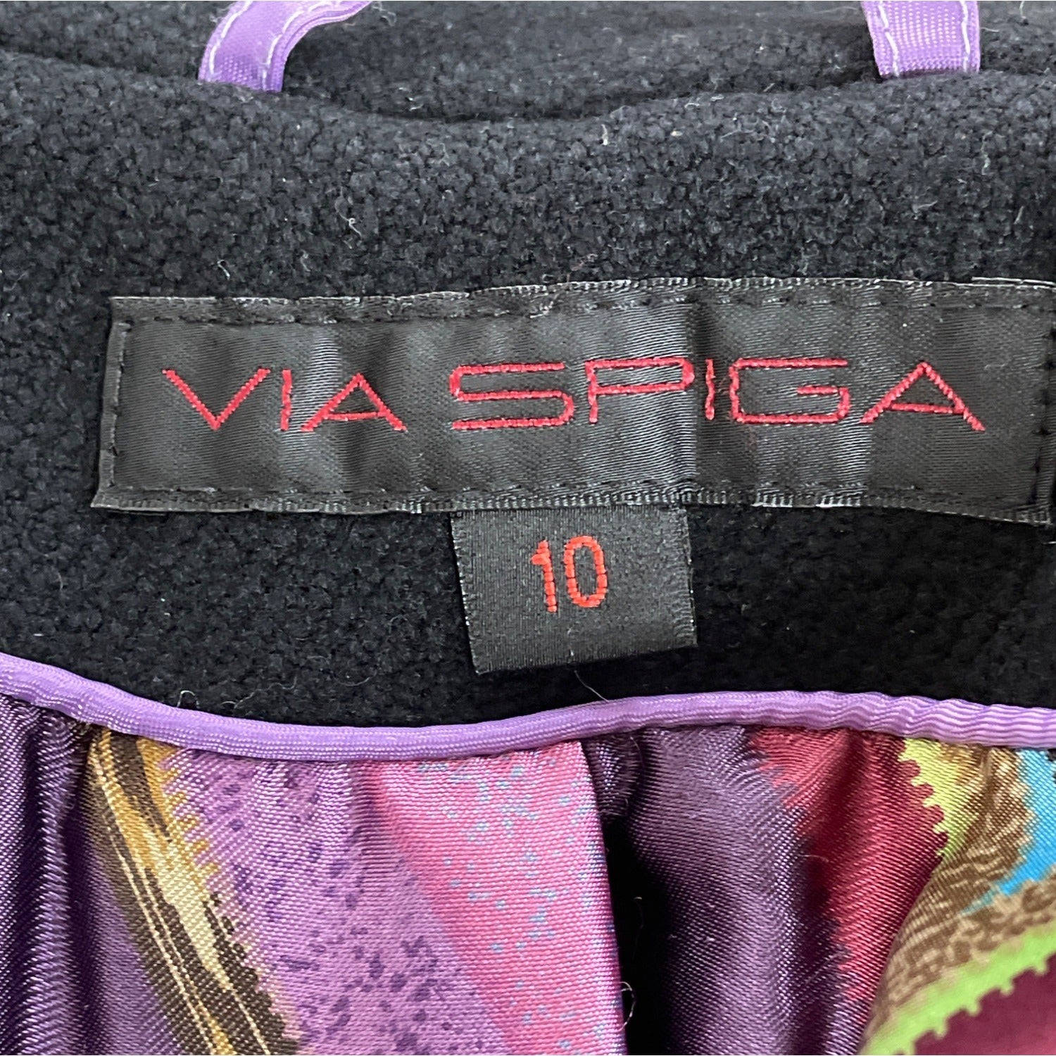 Via Spiga Black Wool Blend Women's Long Coat With Chevron Print Lining Size 10