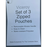 Viceroy Blue/White Polyester Set Of 3 Zipped Pouches With Removable Wristlet Handle