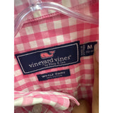 Vineyard Vines Mens Pink Gingham Whale Shirt Size M 100% Cotton Long Sleeve