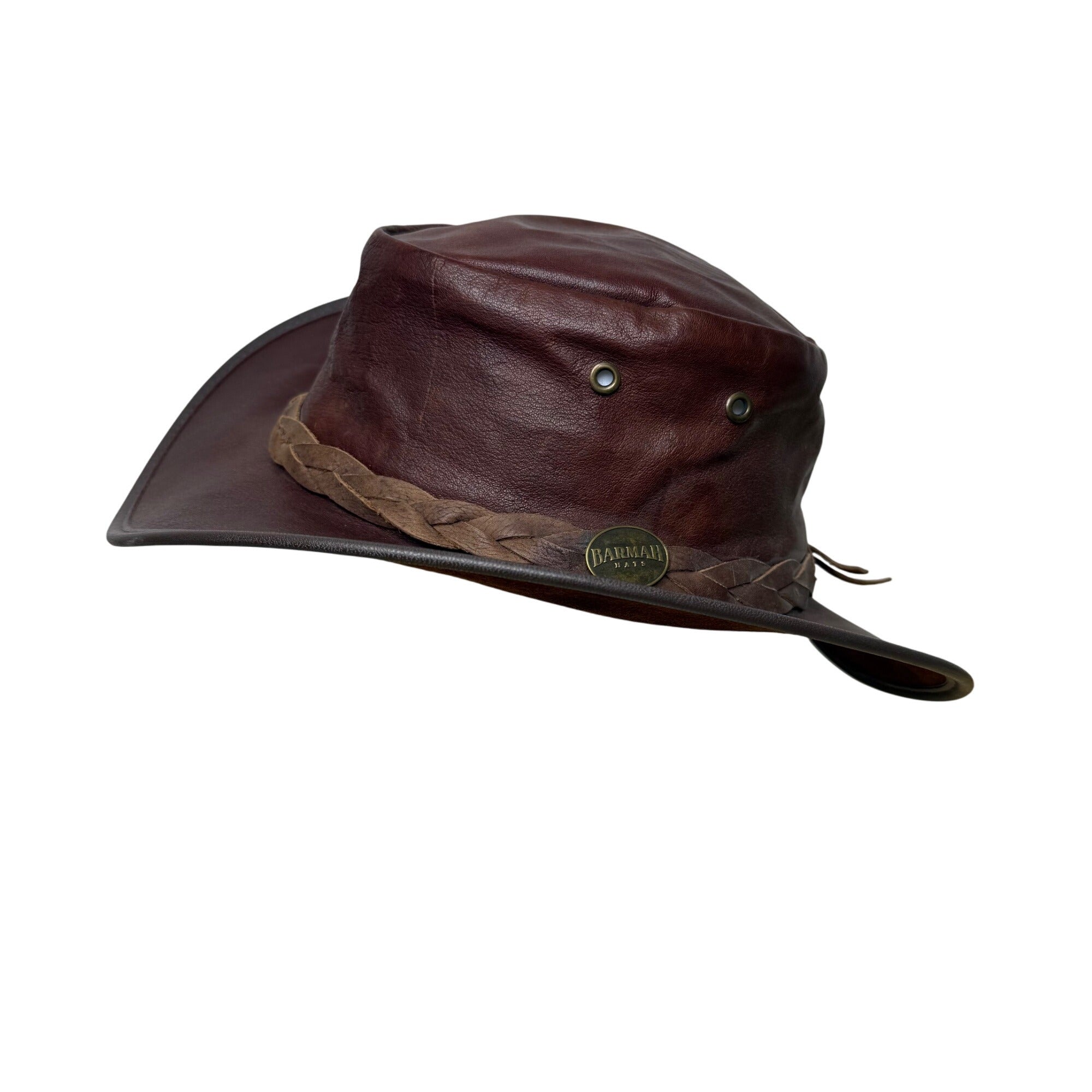 Vintage 1019 Barmah Men Brown Kangaroo Leather Waterproof Sundowner Hat Size M