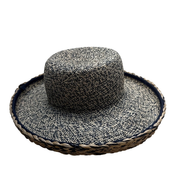Vintage 80s Talbots Sun Hat With Braided Banding Black Woven Straw and Wide Brim