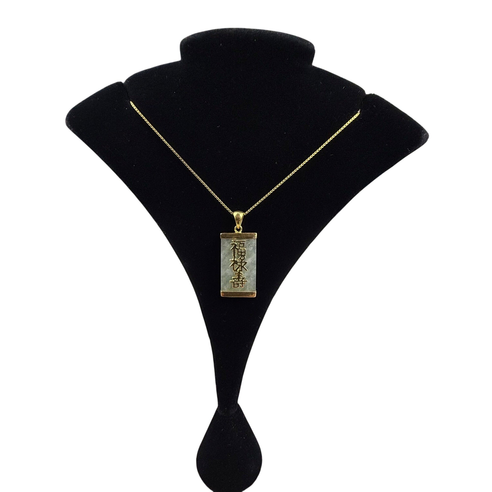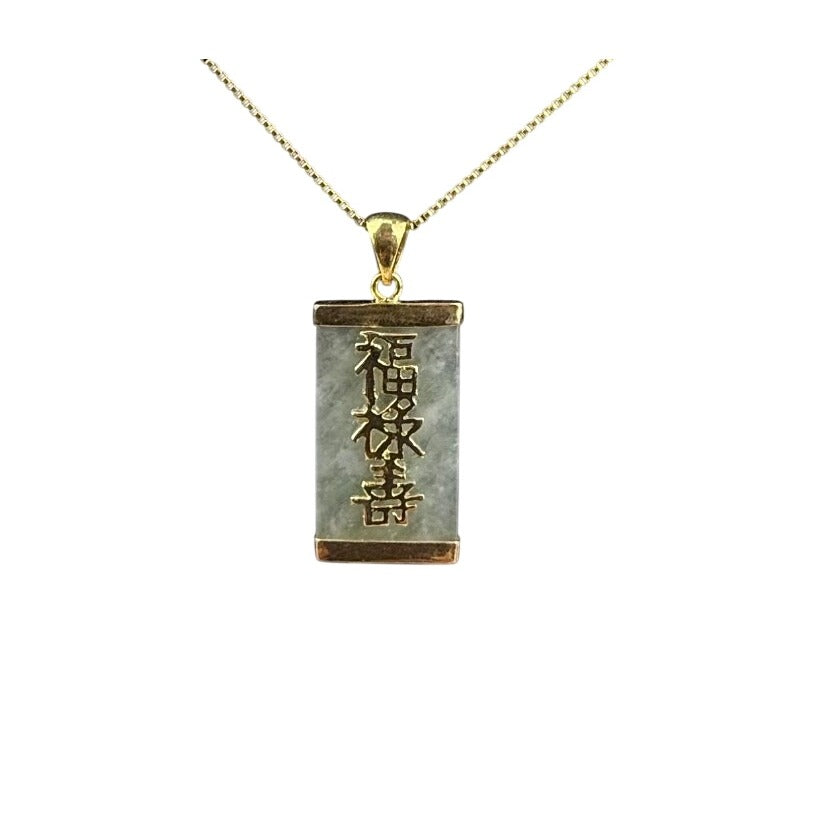 Vintage 925 Italy White Jade Fu Lu Shou Pendant Necklace Sterling Silver
