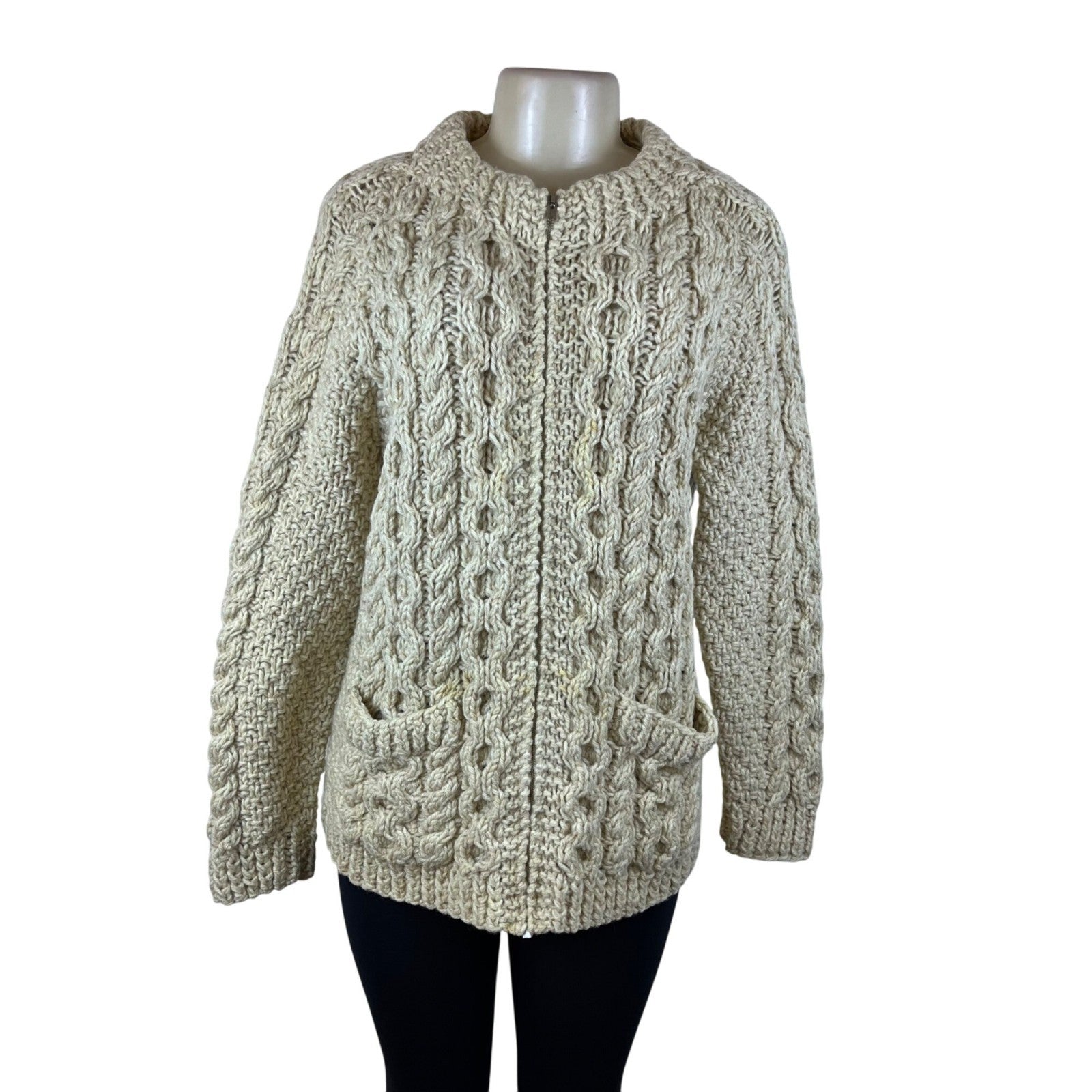 Vintage Andion Women's Cream Wool Knit Sweater Cardigan Open Front Pockets