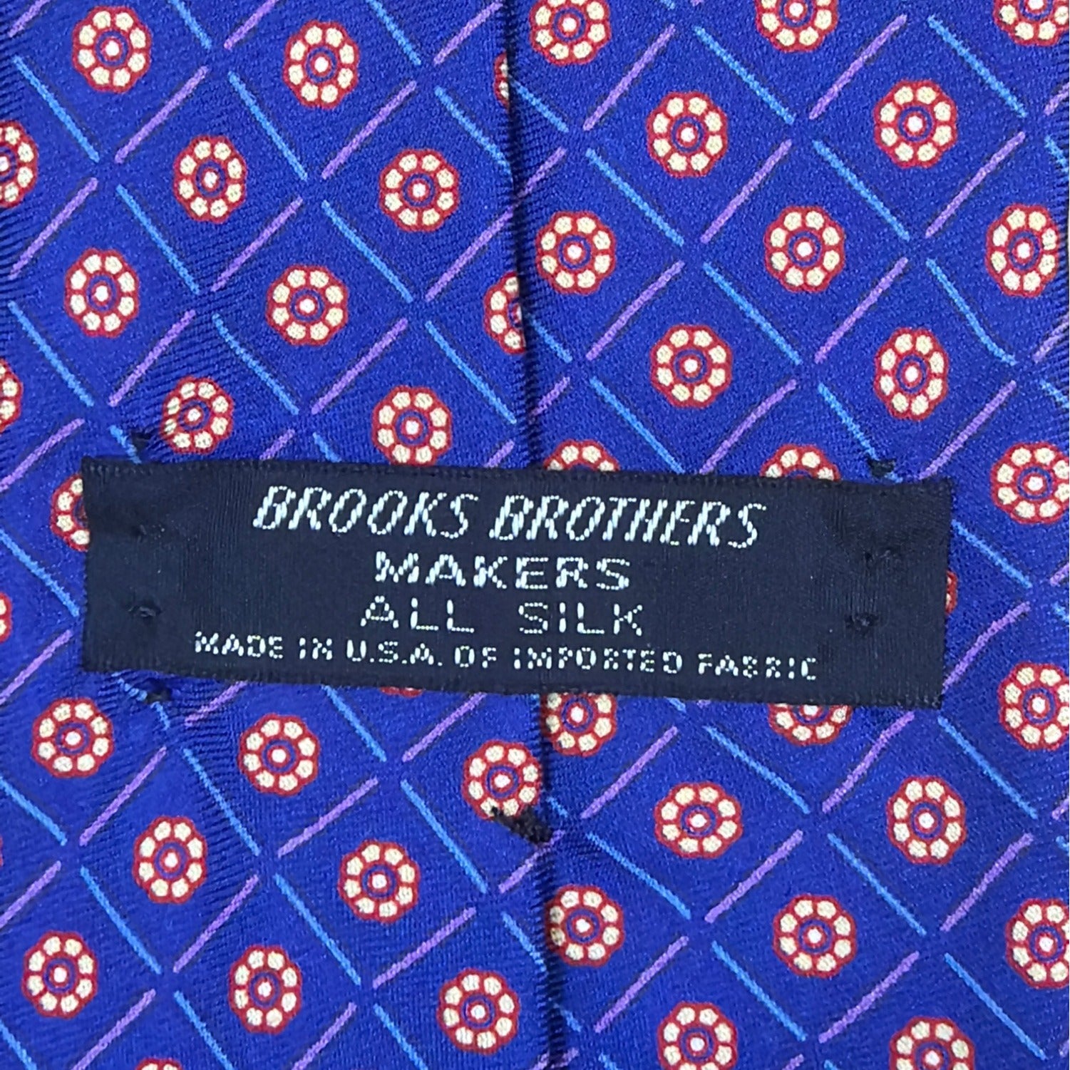 Vintage Brooks Brothers Blue Silk Floral Pattern Tie 58" Long Made In USA