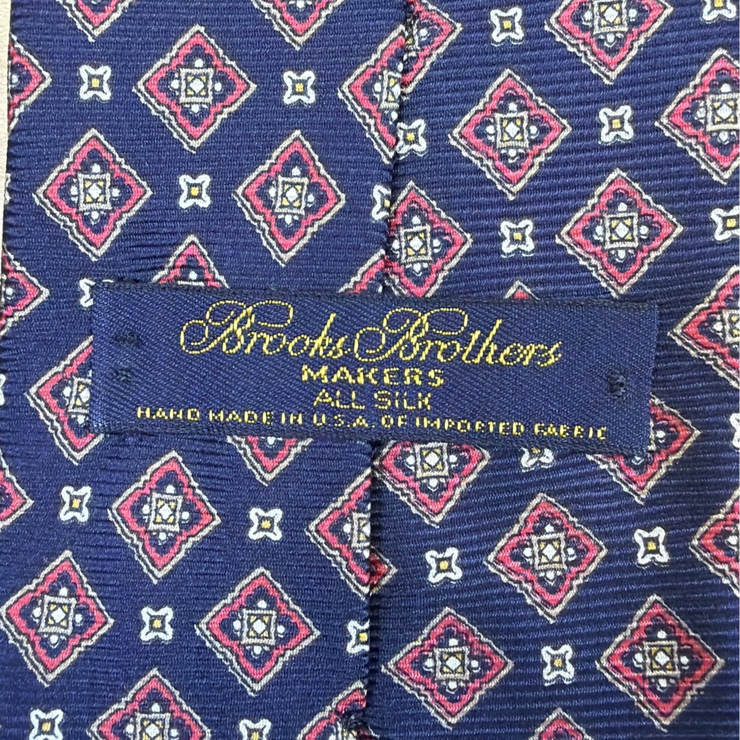 Vintage Brooks Brothers Blue Silk Printed Tie Geometric Diamond Pattern