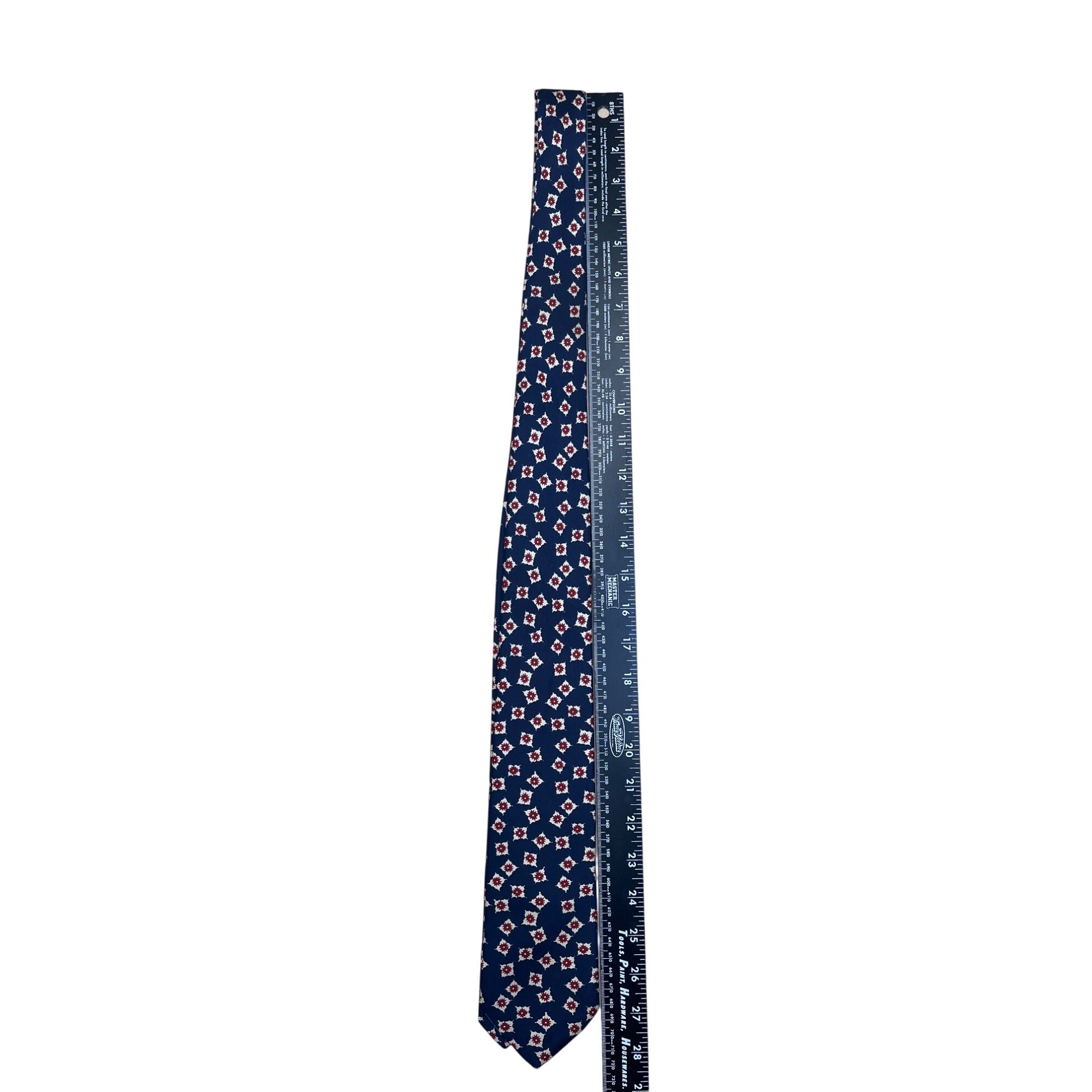 Vintage Brooks Brothers Mens Navy All Silk Tie Red White Geometric Floral Pattern