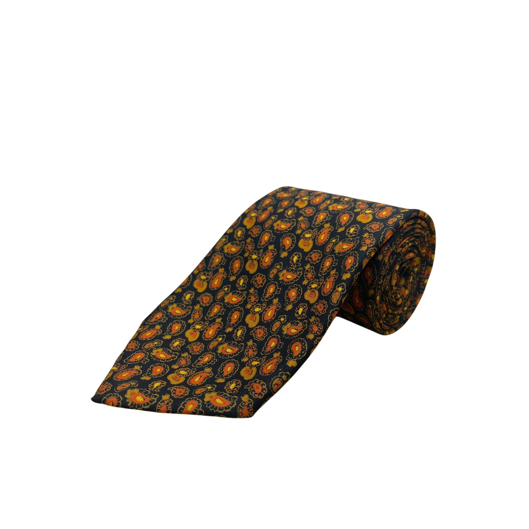 Vintage Brooks Brothers Navy Orange Silk Paisley Tie 57in Made in England